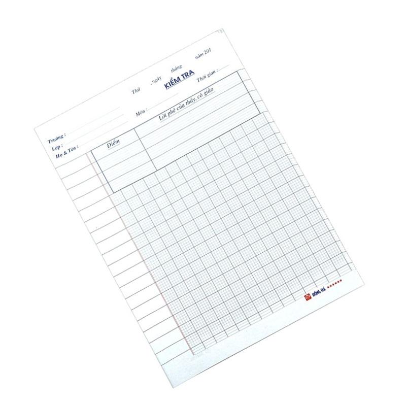Giấy Kiểm Tra Cấp 1, 4 Ô Ly Giúp bạn xử lý kịp thời các bài kiểm tra đột xuất. Tiết kiệm nhiều thời gian chuẩn bị hơn, tạo tâm lý thoải mái cho bài