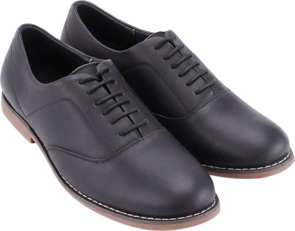 Giày nam Huy Hoàng da bò cột dây mũi tròn màu đen 7711