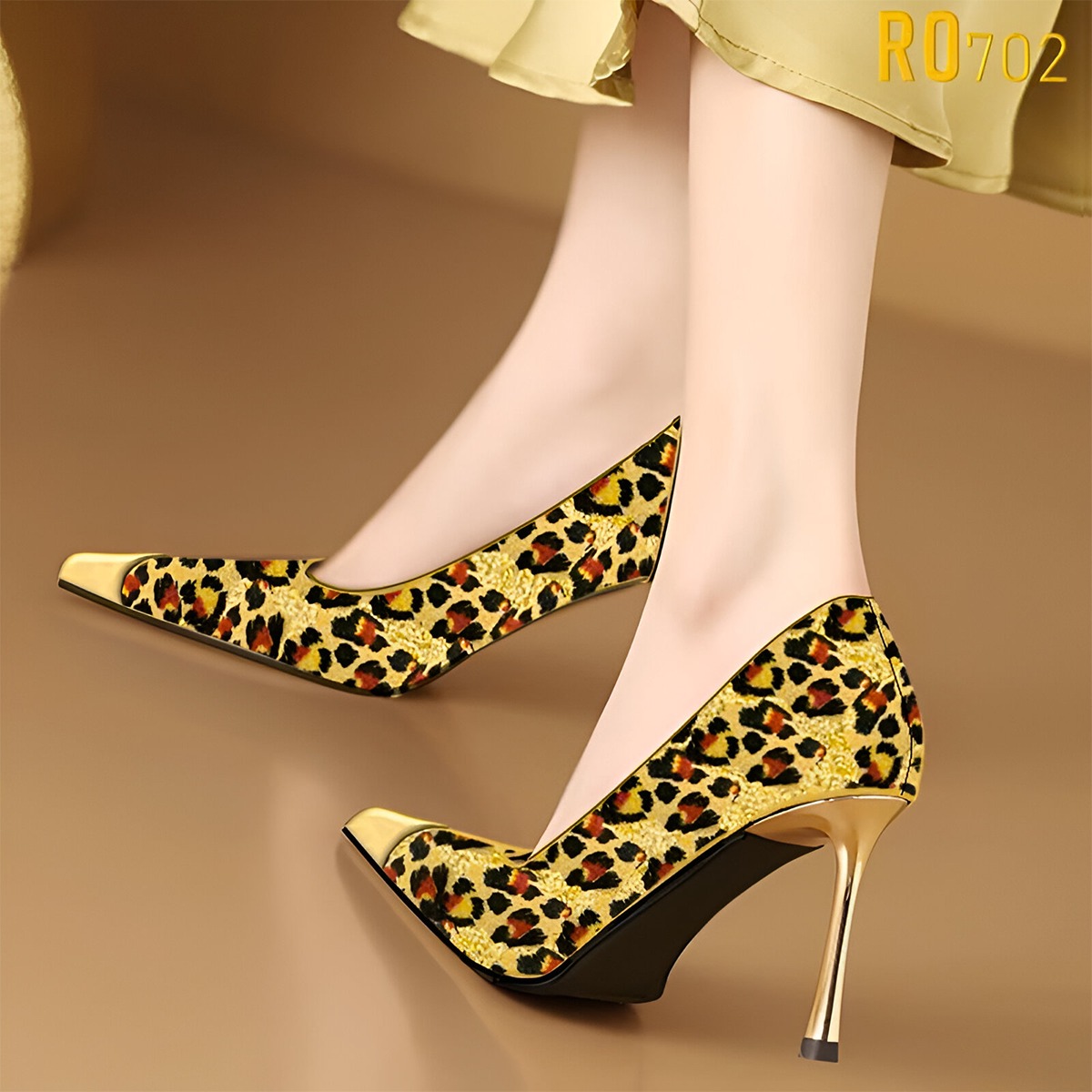 ✨Giày nữ cao gót họa tiết beo ROSATA RO702 -8p- Beo - HÀNG VIỆT NAM - BKSTORE