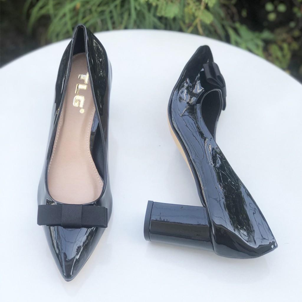 ✨Giày nữ da bóng đính nơ thời trang phong cách 21542