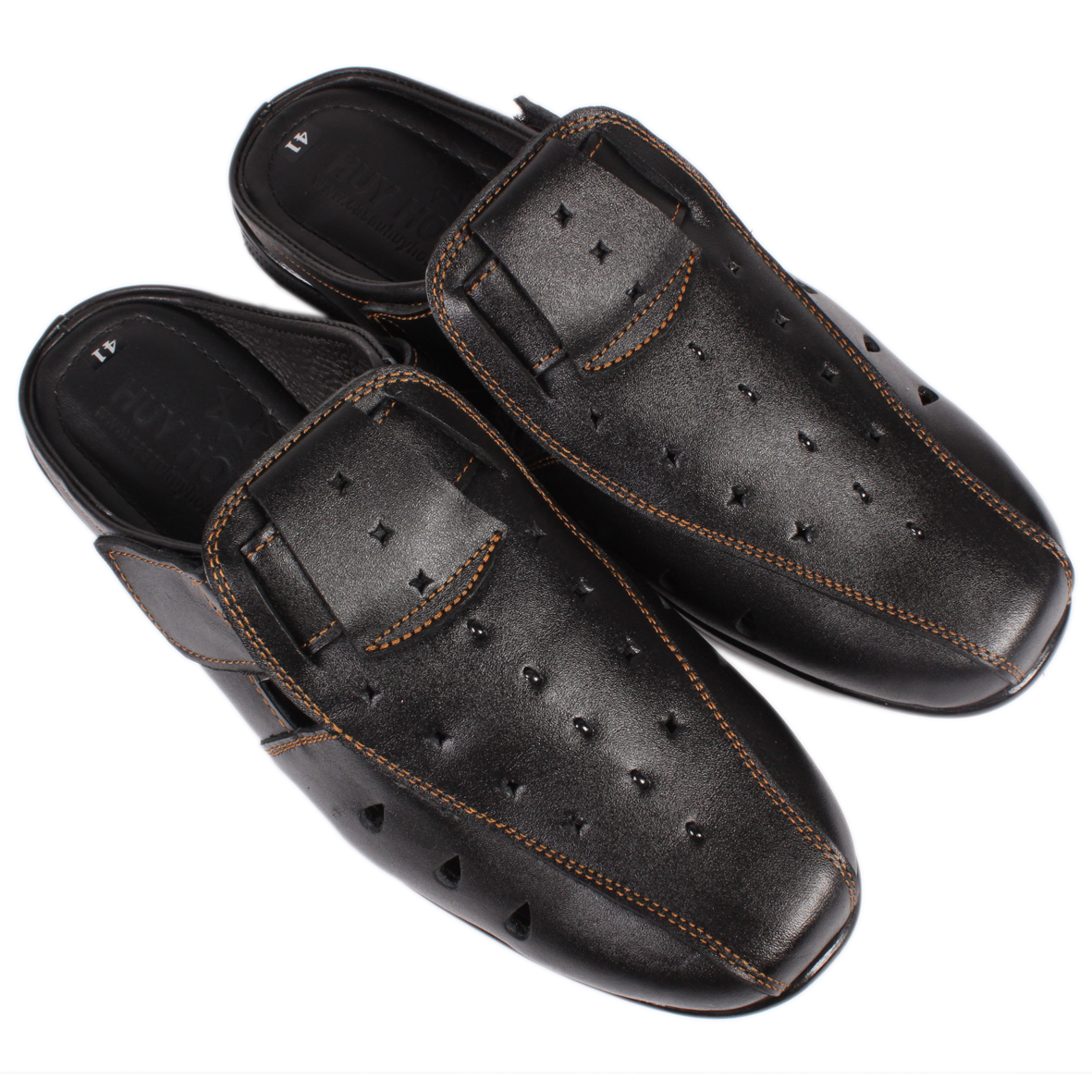 Giày sabo nam Huy Hoàng da bò màu đen 7796