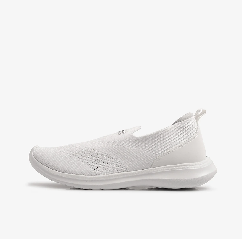 Đế giày - lựa chọn chất liệu Phylon làm nên đế giày thể thao cho các chị em. Vì tính chất nổi bật của vật liệu này là trọng lượng siêu nhẹ (nặng chỉ 300g/chiếc) và độ đàn hồi cao. Nhờ đó, phần lớn khách hàng sử dụng sản phẩm ngay từ lần đầu tiên đều có cảm giác đôi chân “nhẹ như bay”, bước đi thoải mái và thỏa thích vận động ở mọi tư thế theo cách riêng mà không lo đau mỏi chân. - Mặt đế thiết kế thêm những rãnh chống trượt, bố trí dày đặc nhằm tăng độ ma sát. Qua đó giúp người mang vận động thoải mái, bước đi vững chắc và bảo đảm an toàn tối đa, nhất là khi di chuyển trên những địa hình trơn nhẵn hoặc thời tiết ẩm ướt. Thân giày - Thân giày áp dụng công nghệ đan 2 sợi độc đáo. Nhờ vậy, sản phẩm vô cùng nhẹ và thoáng, mang lại cảm giác thoải mái nhất có thể cho người sử dụng. Không những vậy, công nghệ đan 2 sợi còn bảo đảm độ bền chặt của từng chi tiết như cổ giày, quai giày, dây giày… giữ đúng form dáng lâu dài, ít biến dạng hoặc giãn sau một thời gian sử dụng. - Bên cạnh đó, thiết kế thân giày được cải tiến mạnh mẽ bằng chất liệu vải canva, bảo đảm cảm giác thoải mái nhất có thể và hạn chế nóng bức, bí bách nếu phải mang giày trong thời gian dài. -