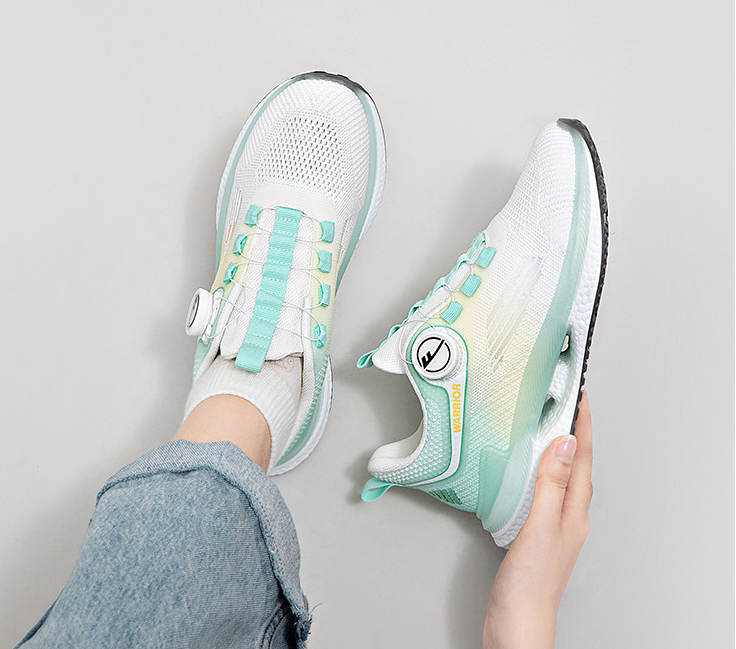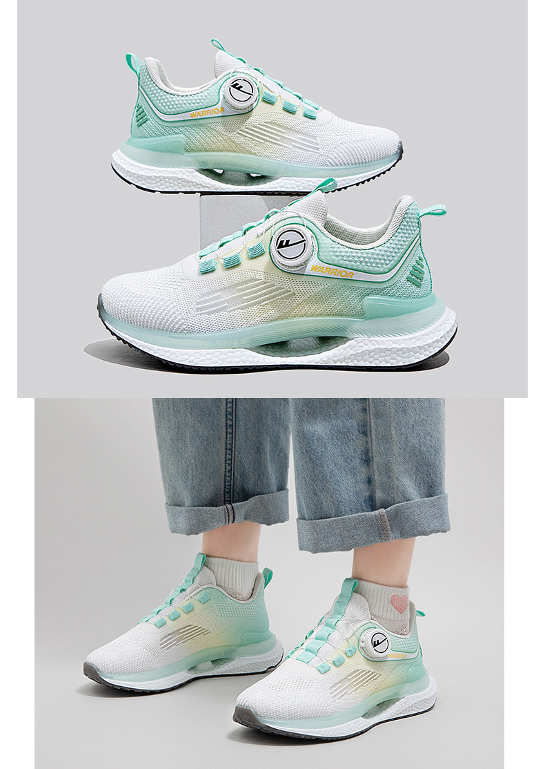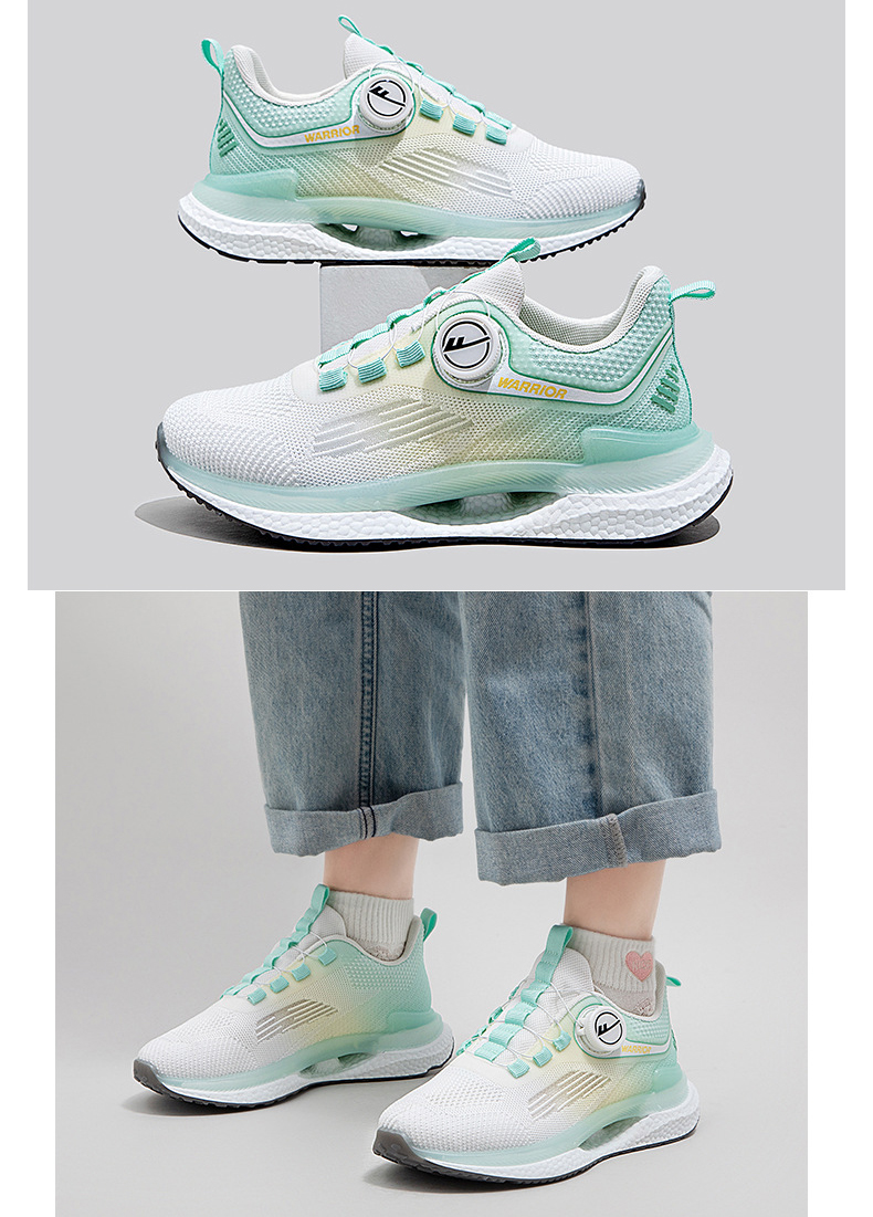 Đế giày - lựa chọn chất liệu Phylon làm nên đế giày thể thao cho các chị em. Vì tính chất nổi bật của vật liệu này là trọng lượng siêu nhẹ (nặng chỉ 300g/chiếc) và độ đàn hồi cao. Nhờ đó, phần lớn khách hàng sử dụng sản phẩm ngay từ lần đầu tiên đều có cảm giác đôi chân “nhẹ như bay”, bước đi thoải mái và thỏa thích vận động ở mọi tư thế theo cách riêng mà không lo đau mỏi chân. - Mặt đế thiết kế thêm những rãnh chống trượt, bố trí dày đặc nhằm tăng độ ma sát. Qua đó giúp người mang vận động thoải mái, bước đi vững chắc và bảo đảm an toàn tối đa, nhất là khi di chuyển trên những địa hình trơn nhẵn hoặc thời tiết ẩm ướt. Thân giày - Thân giày áp dụng công nghệ đan 2 sợi độc đáo. Nhờ vậy, sản phẩm vô cùng nhẹ và thoáng, mang lại cảm giác thoải mái nhất có thể cho người sử dụng. Không những vậy, công nghệ đan 2 sợi còn bảo đảm độ bền chặt của từng chi tiết như cổ giày, quai giày, dây giày… giữ đúng form dáng lâu dài, ít biến dạng hoặc giãn sau một thời gian sử dụng. - Bên cạnh đó, thiết kế thân giày được cải tiến mạnh mẽ bằng chất liệu vải canva, bảo đảm cảm giác thoải mái nhất có thể và hạn chế nóng bức, bí bách nếu phải mang giày trong thời gian dài. -