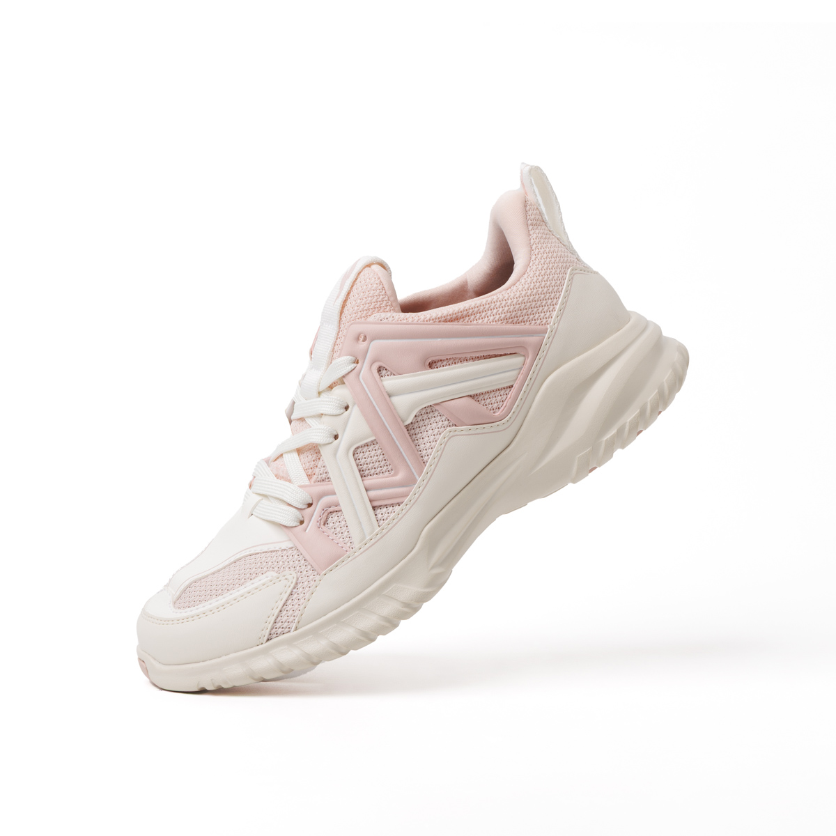 Đế giày - lựa chọn chất liệu Phylon làm nên đế giày thể thao cho các chị em. Vì tính chất nổi bật của vật liệu này là trọng lượng siêu nhẹ (nặng chỉ 300g/chiếc) và độ đàn hồi cao. Nhờ đó, phần lớn khách hàng sử dụng sản phẩm ngay từ lần đầu tiên đều có cảm giác đôi chân “nhẹ như bay”, bước đi thoải mái và thỏa thích vận động ở mọi tư thế theo cách riêng mà không lo đau mỏi chân. - Mặt đế thiết kế thêm những rãnh chống trượt, bố trí dày đặc nhằm tăng độ ma sát. Qua đó giúp người mang vận động thoải mái, bước đi vững chắc và bảo đảm an toàn tối đa, nhất là khi di chuyển trên những địa hình trơn nhẵn hoặc thời tiết ẩm ướt. Thân giày - Thân giày áp dụng công nghệ đan 2 sợi độc đáo. Nhờ vậy, sản phẩm vô cùng nhẹ và thoáng, mang lại cảm giác thoải mái nhất có thể cho người sử dụng. Không những vậy, công nghệ đan 2 sợi còn bảo đảm độ bền chặt của từng chi tiết như cổ giày, quai giày, dây giày… giữ đúng form dáng lâu dài, ít biến dạng hoặc giãn sau một thời gian sử dụng. - Bên cạnh đó, thiết kế thân giày được cải tiến mạnh mẽ bằng chất liệu vải canva, bảo đảm cảm giác thoải mái nhất có thể và hạn chế nóng bức, bí bách nếu phải mang giày trong thời gian dài. -