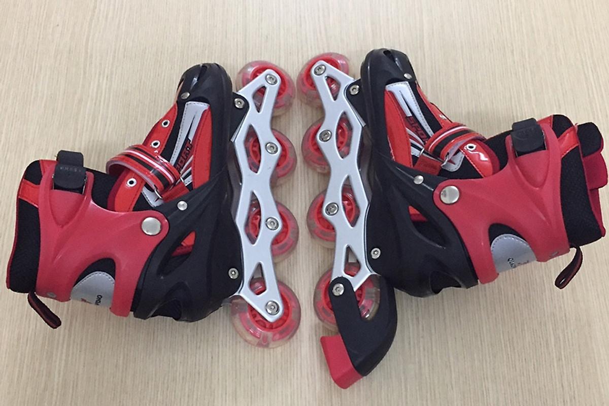 • Bên cạnh đó, giày có khung càng ghép làm bằng nhôm cao cấp, giúp giữ chắc chắn phần thân giày và phần bánh xe, mang lại sự an toàn và thoải mái cho người chơi. Ngoài ra, vòng bi linh hoạt giúp bánh xe hoạt động trơn tru, di chuyển một cách dễ dàng.