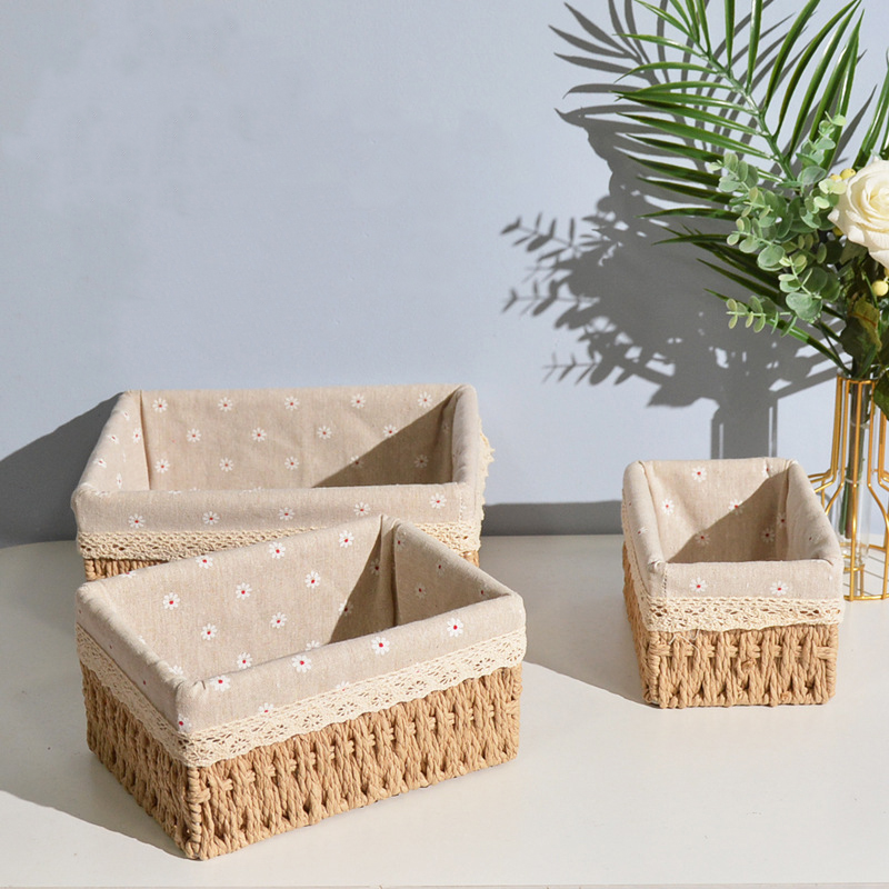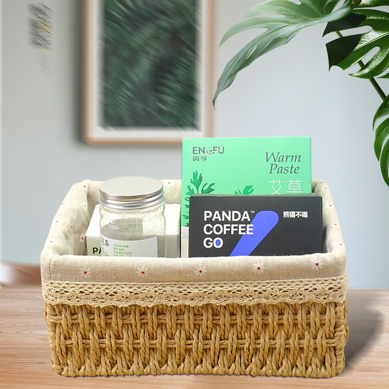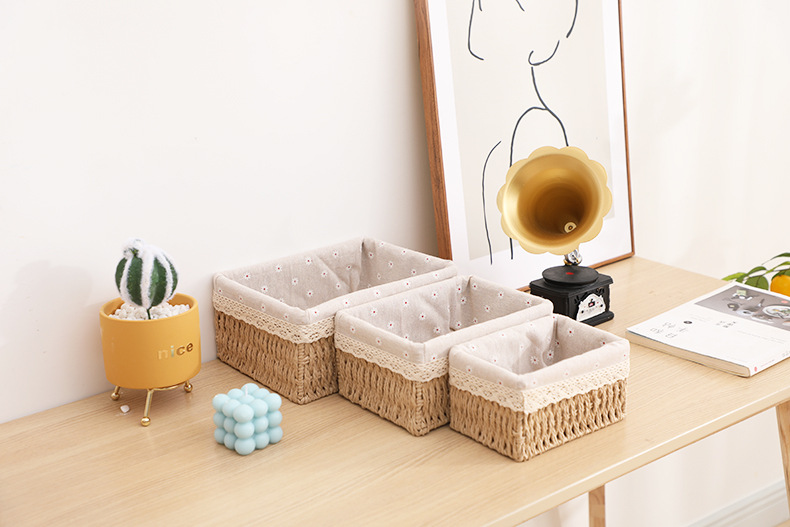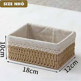 Giỏ cói đựng mỹ phẩm, đựng đồ văn phòng phẩm để bàn, decor chụp ảnh sản phẩm lót vải vintage (Giỏ Mây Mềm)