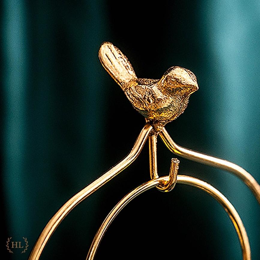 Lồng chim decor đựng dĩa , thìa đồ ăn trang trí , thiết kế độc đáo , hình lồng chim mạ vàng , cốc bằng sứ thiết kế theo phong cách bắc âu