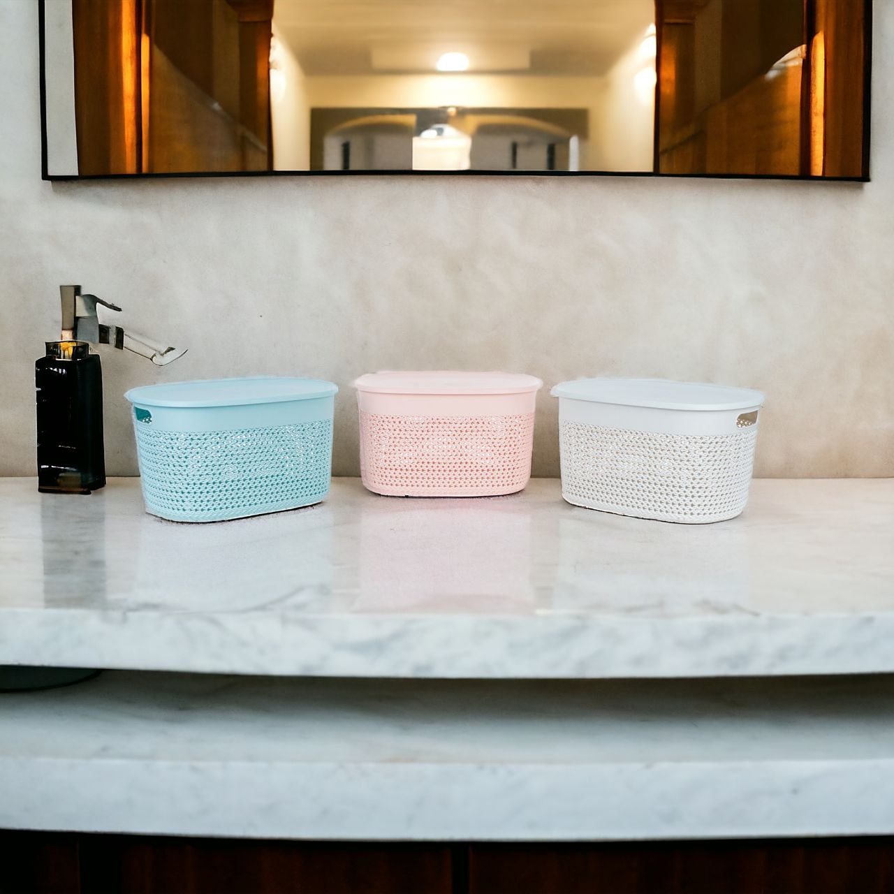 BỘ GIỎ SẢN PHẨM CÓ NẮP CÓ 3 MÀU - XANH - GHI - HỒNG