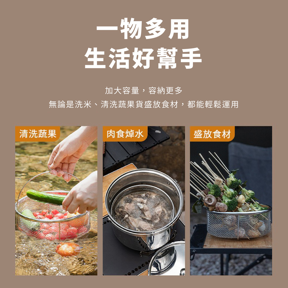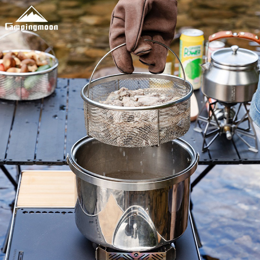 Giỏ thoát nước lớn/ Rổ rau thép không gỉ Campingmoon CC-22 là sản phẩm hoàn hảo dành cho những người yêu thích cắm trại, dã ngoại và nấu ăn ngoài trời. Với chất liệu thép không gỉ cao cấp và thiết kế thoát nước thông minh, Giỏ thoát nước giúp bạn sơ chế rau củ, thực phẩm nhanh chóng và tiện lợi hơn bao giờ hết, đảm bảo an toàn và vệ sinh trong mọi hoàn cảnh.