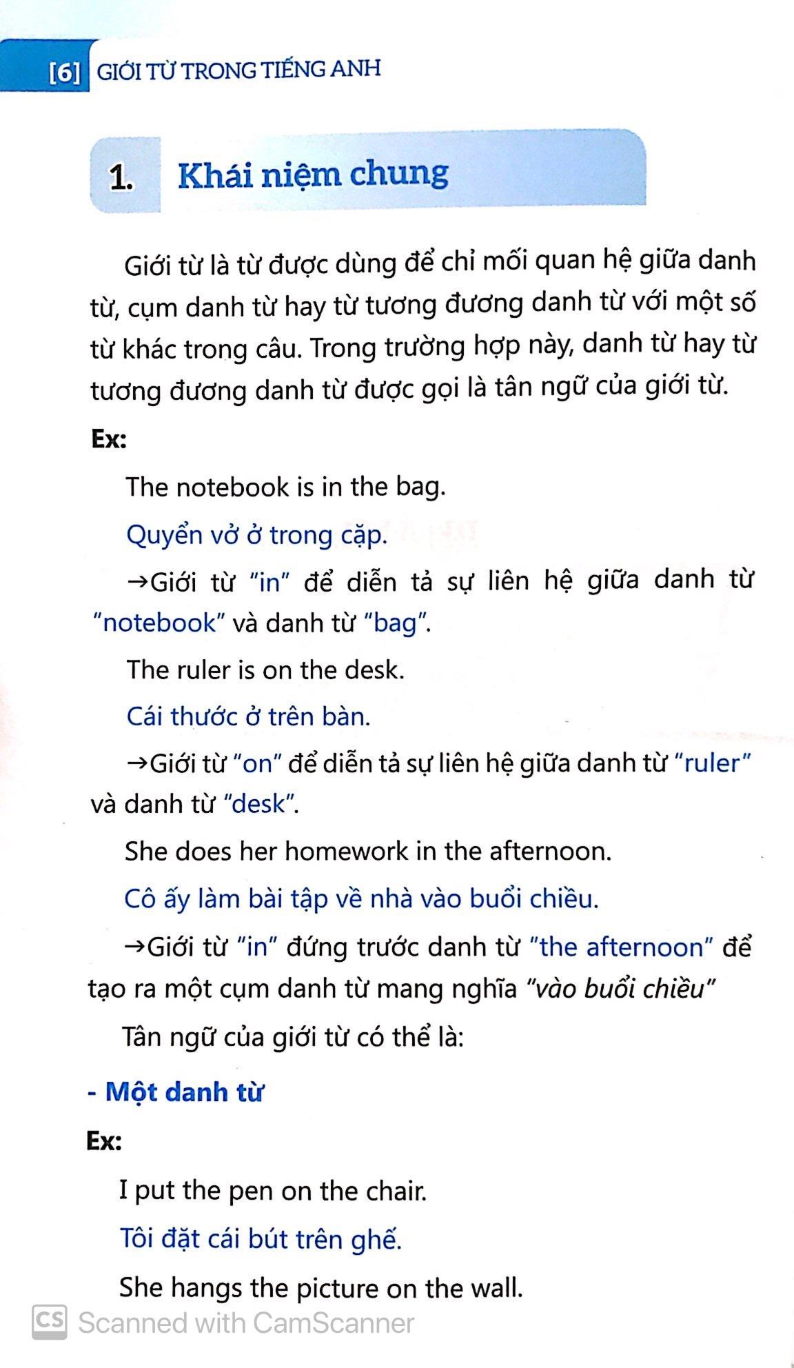 Mua tại TiktokGiới từ là từ hoặc nhóm từ thường được dùng trước danh từ hoặc đại từ để chỉ sự liên hệ giữa danh từ hoặc đại từ này với các thành phần khác trong câu. Cuốn sách sẽ giúp bạn có thêm nhiều từ vựng về giới từ để phục vụ việc học tập, làm việc một cách tốt nhất.