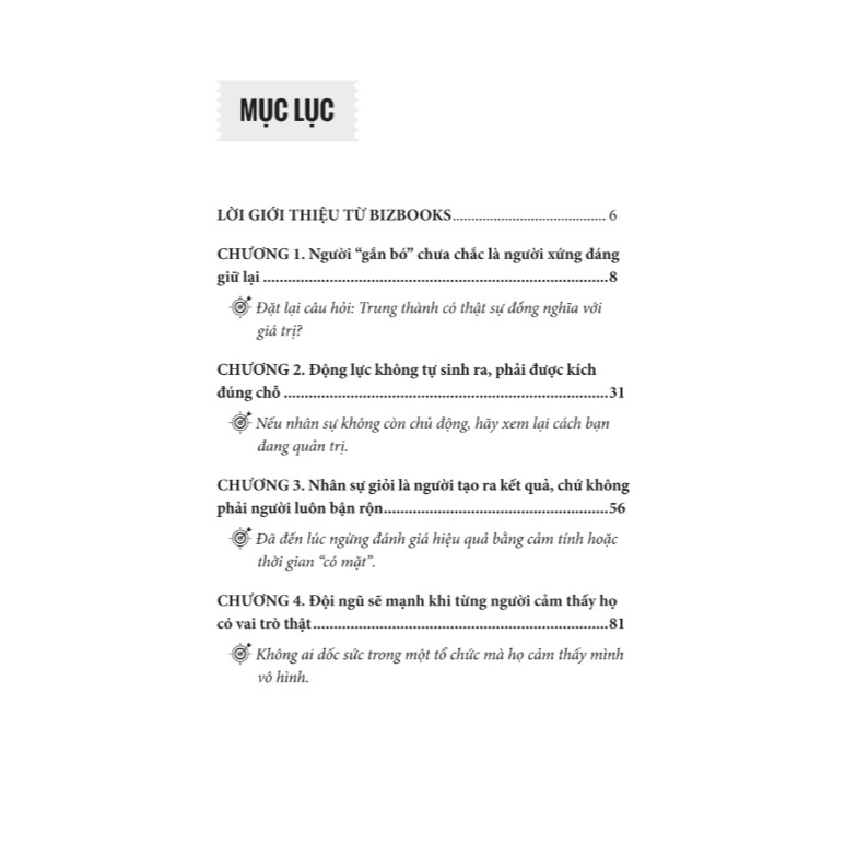 2. Làm thế nào để buông bỏ – mà không gây hỗn loạn? Một trong những nội dung khiến nhiều độc giả tâm đắc nhất là cách mà Brian chỉ ra quy trình "chia tay" nhân sự kém – nhưng vẫn giữ được tôn trọng và văn minh. Làm sao để không bị mang tiếng "máu lạnh" Làm sao để truyền đạt, cảnh báo, cho cơ hội – nhưng không dây dưa Làm sao để cả đội ngũ hiểu rằng: “Loại bỏ một cá nhân không phải vì ác cảm, mà vì sự tiến bộ của tập thể”
