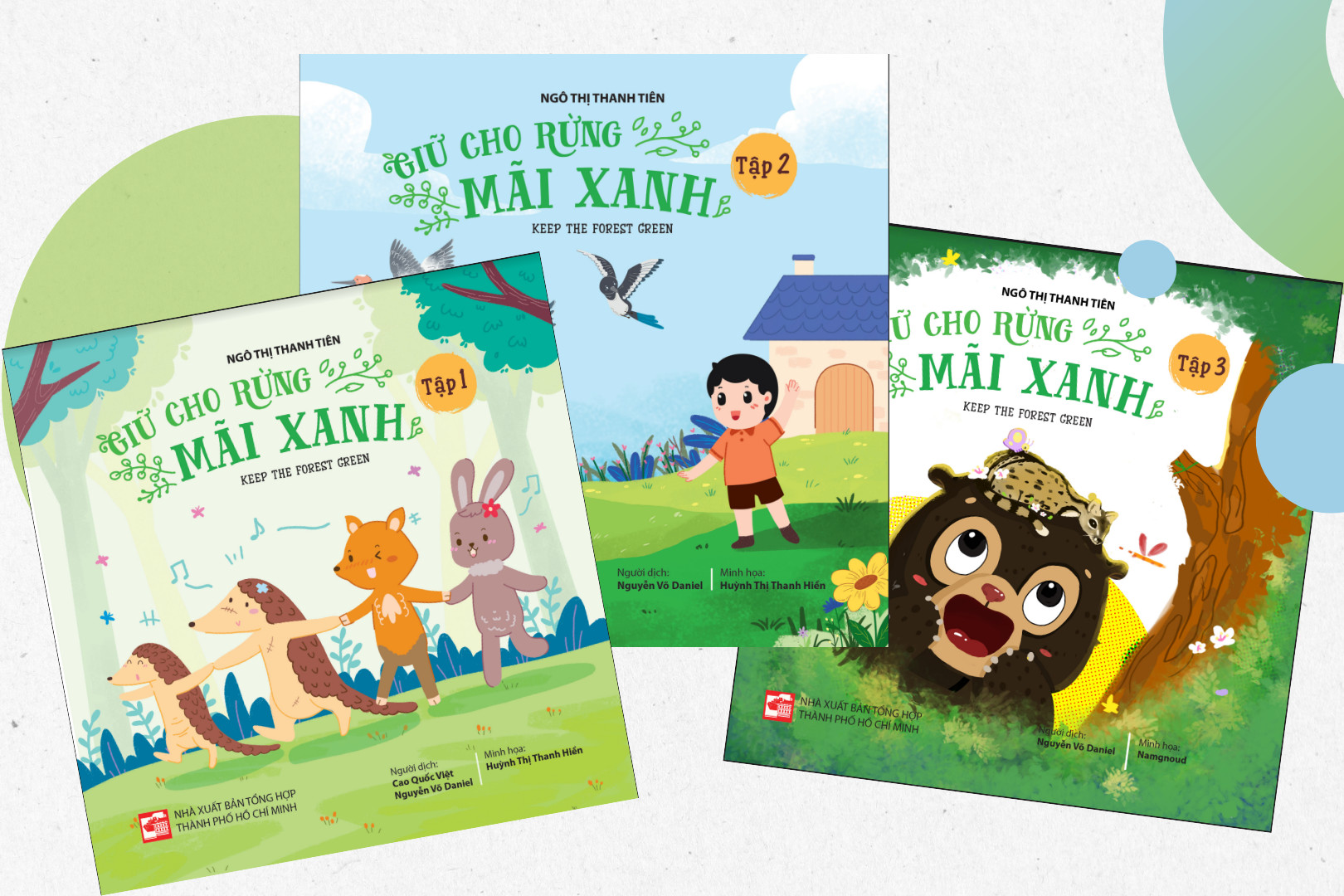 Bộ truyện song ngữ Anh – Việt gồm 3 quyển, độ dày mỗi tập 52 trang với 6 câu chuyện: Pan dũng cảm - Đôi bạn thân - Magpie yêu thương - Sarus sẽ về - Gấu chó tốt bụng - Civet được chữa lành. Tác phẩm đề cập đến việc bảo vệ các động vật hoang dã khỏi nguy cơ tuyệt chủng và bảo vệ nguồn tài nguyên vô giá từ rừng xanh. Rừng vô cùng quan trọng đối với đời sống con người. Nếu không có rừng, con người sẽ đối mặt với rất nhiều thảm họa. Chúng ta phải quyết tâm giữ được nguồn tài nguyên vô giá của đất nước trường tồn mãi mãi đến muôn đời sau.