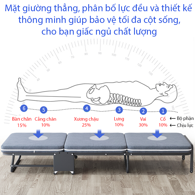 GIƯỜNG GẤP BA KHÚC NIKITA GB I: ƯU ĐIỂM- Giường có lớp đệm dầy vừa đủ cho giấc ngủ thoải mái.-Dưới lớp nệm có lớp ván chống lún, những người ngủ nệm lún bị đau lưng không phải lo về vấn đề nệm ...