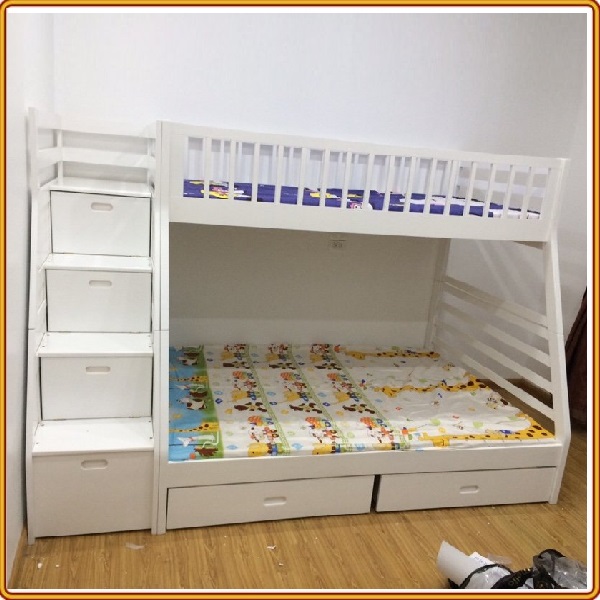 + Chất liệu: Khung giường gỗ thông Newzealand, phân tầng, Vách, đáy hộc gỗ công nghiệp, thang giường MDF chịu lực + Kích thước: kích thước phủ bì, tầng trên ưới 1mx2m Giường tầng hộp