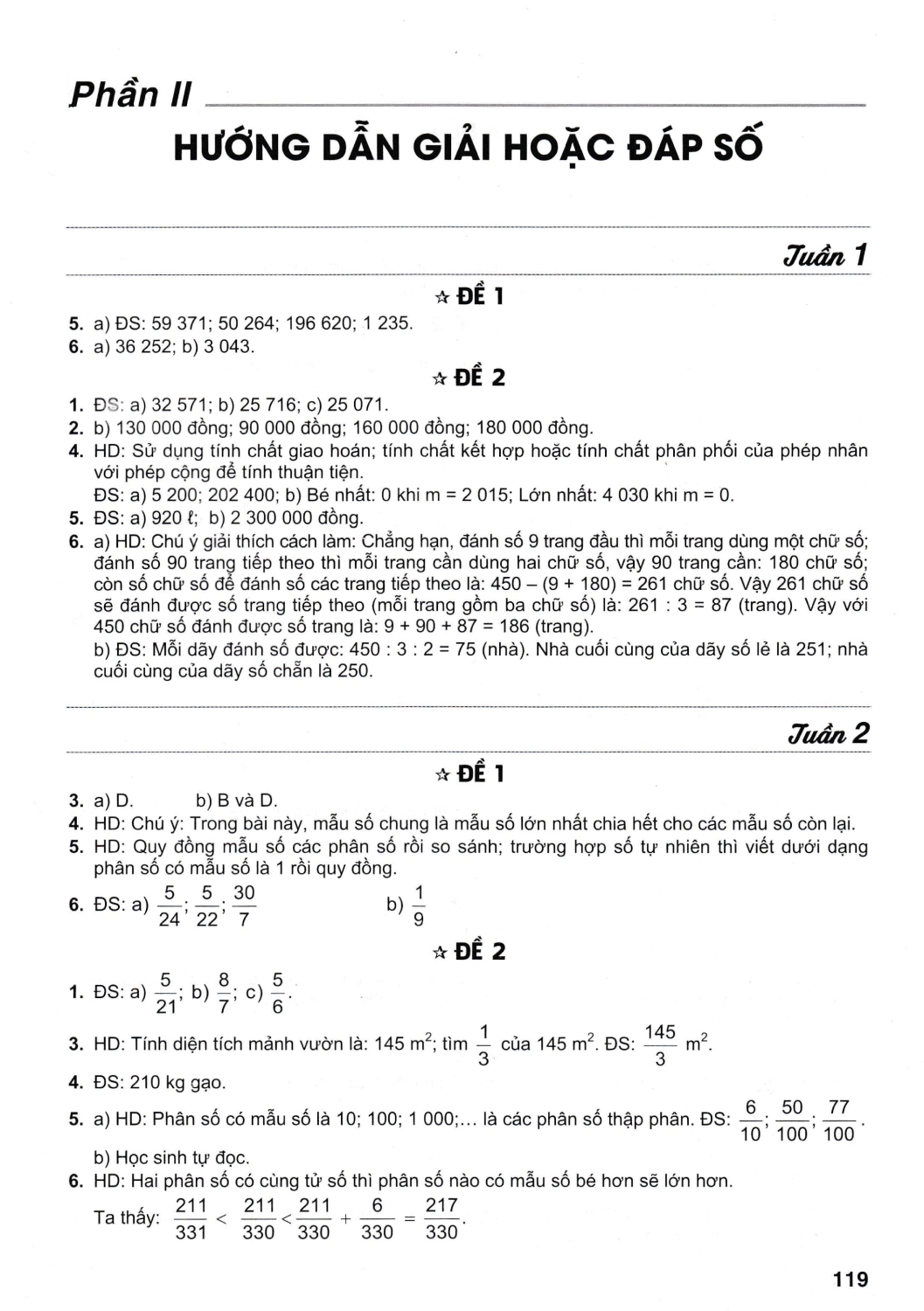 Phần 1: Trình bày dưới dạng các để ôn tập cuối tuần và trải nghiệm giải quyết vấn đề trong phạm vi kiến thức đã học; trong 35 tuần học có 70 để (cuối mỗi tuần có 2 đề); mỗi để cần làm trong khoảng 35 phút đến 40 phút.