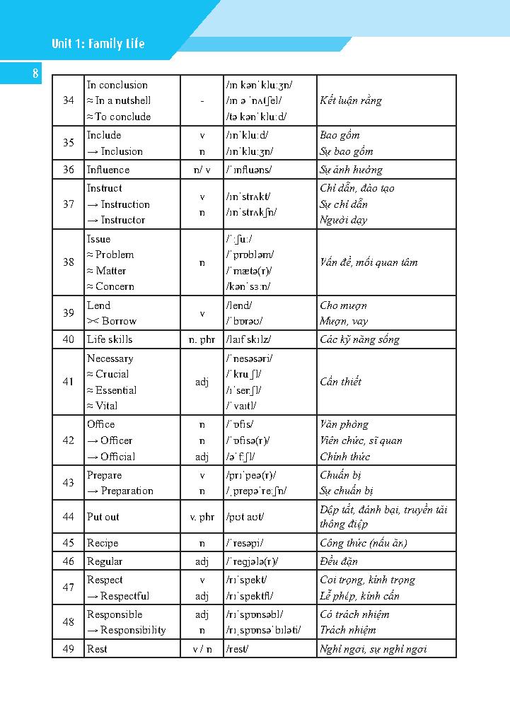 TIẾNG ANH 10 GLOBAL SUCCESS MỚI - UNIT 1 FAMILY LIFE - LANGUAGE - TRANG 9,10