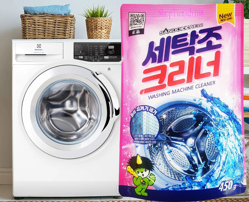 Nhập khẩu chính hãng Hàn Quốc Made in Korea Quy cách: Gói 450g Bột tẩy vệ sinh lồng máy giặt Sandokkaebi sẽ giúp chúng ta giải quyết những điều phiền toái của máy giặt sau một