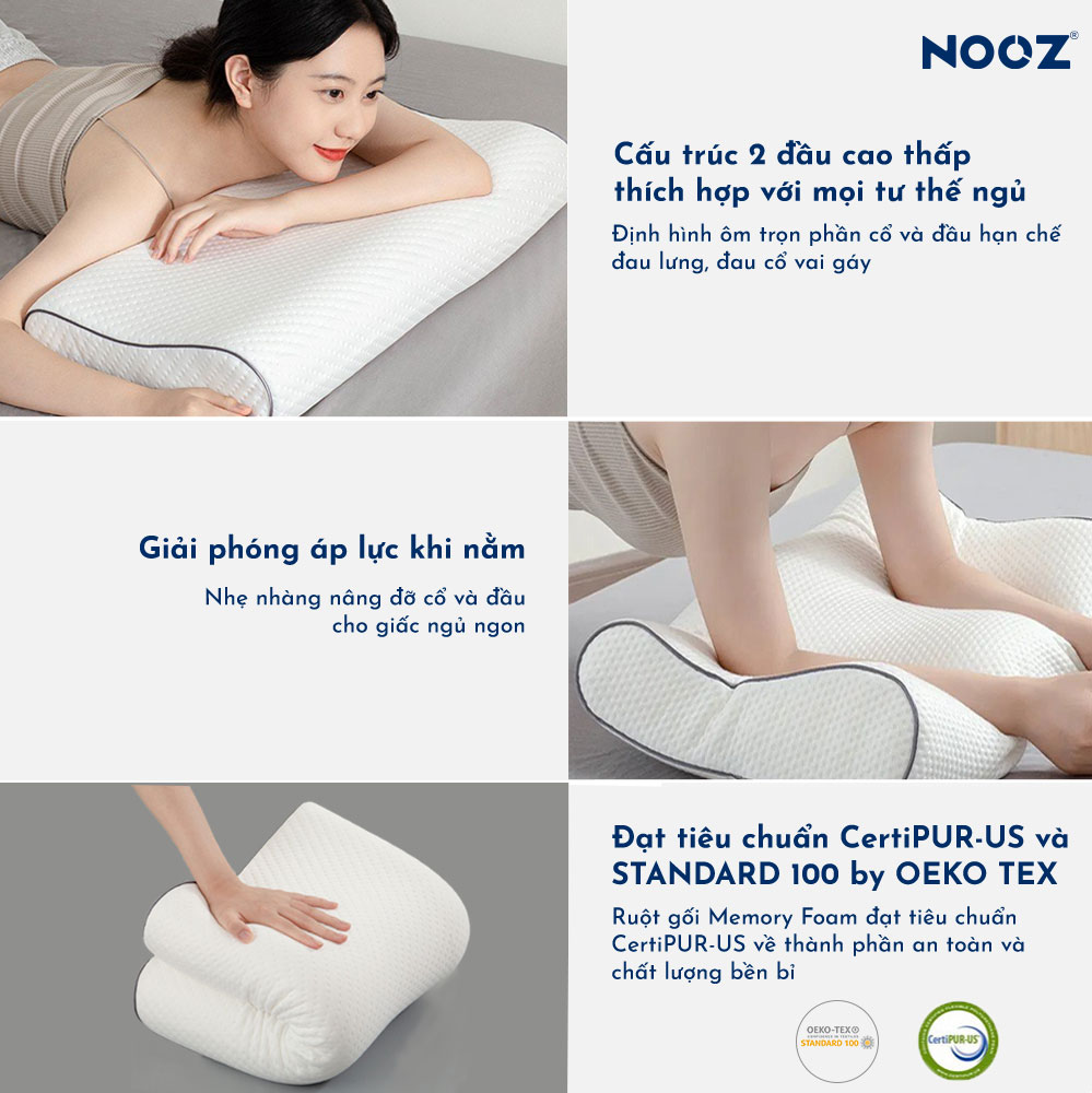 ✨Gối Công Thái Học NOOZ Contour Foam Pillow Cao Su Non Lượn Sóng Nâng Đỡ Đầu - Giảm Đau Vai Gáy