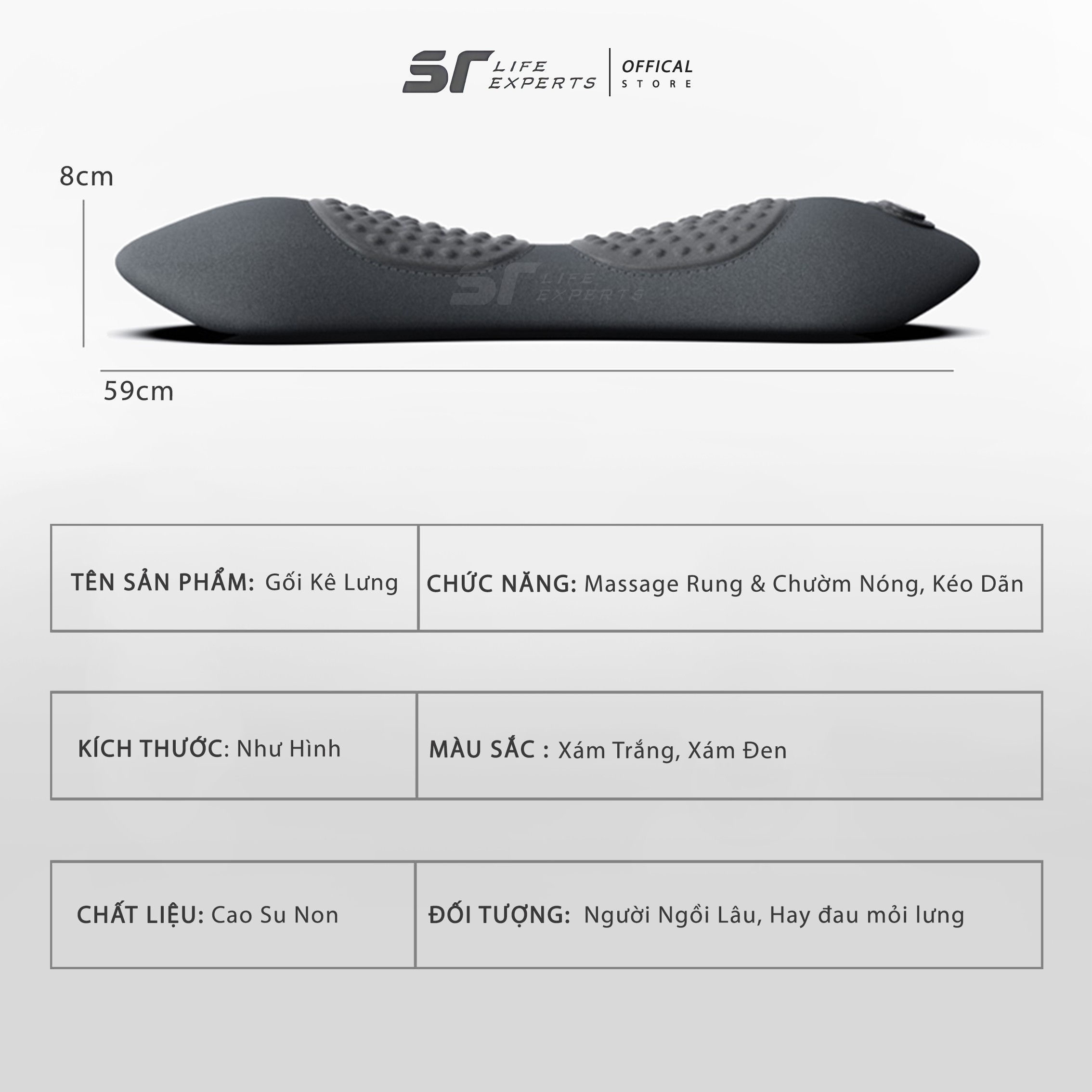 Gối kê massage, chườm nóng, thư giãn và giảm đau vùng thắt lưng