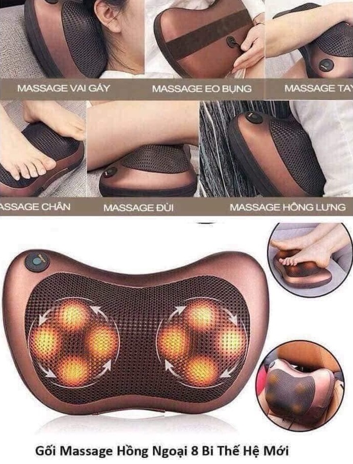 > Gối massage với thiết kế tân tiến 6 bi có khả năng xoay 360 độ massage chuyên sâu giúp cơ thể thư giãn tối đa.
