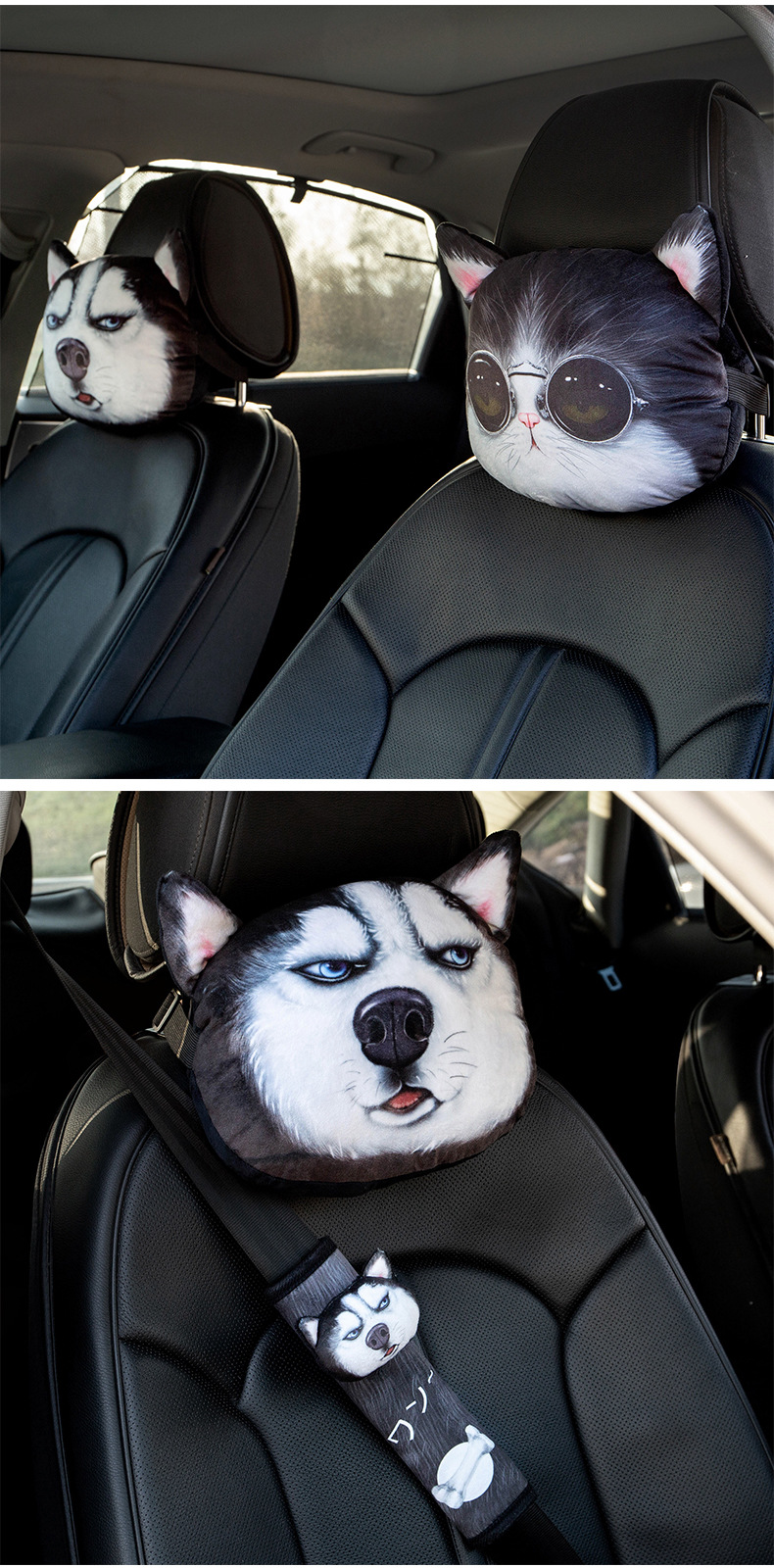 Gối Tựa Cổ & Bọc Dây Đeo An Toàn Hình Thú Cưng Chó Husky - Tiện Lợi & Đáng Yêu Cho Mọi Chuyến Đi!