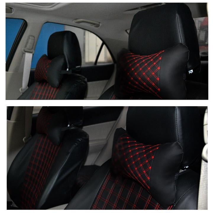 Mua tại Tiktok- Gối tựa đầu bọc da (Đen-đỏ hoặc Đen-trắng) có thiết kế đẹp, sang trọng sẽ giúp tô điểm cho không gian nội thất ô tô