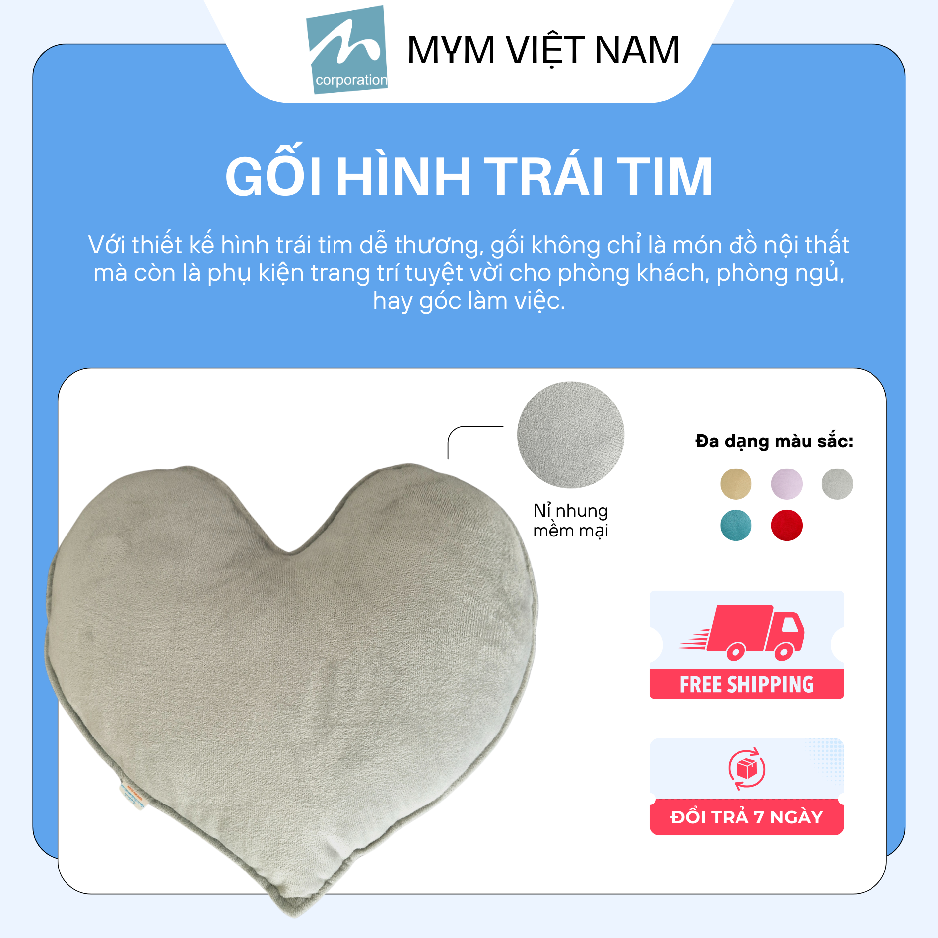 ối trang trí hình trái tim với kích thước là 40 x 50cm được thiết kế với kiểu dáng 3D. Sản phẩm là vật dùng để trang trí, tạo không gian sang trọng cho sofa, giường ngủ