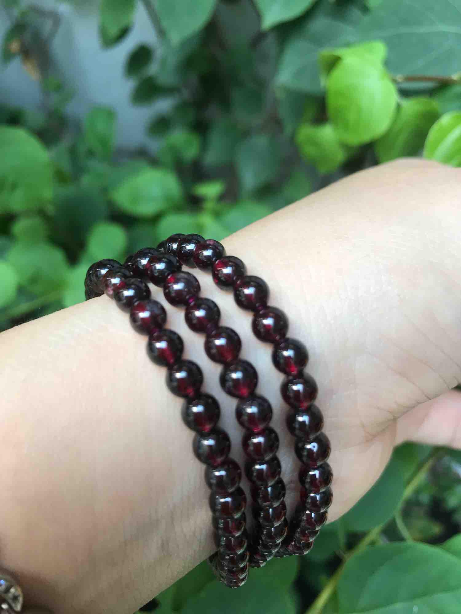 Vòng Tay Chuỗi Nữ Đá Garnet Đỏ Rượu quấn 3 vòng size hạt 4mm các Chị Em Phụ Nữ đeo lên tay ạ