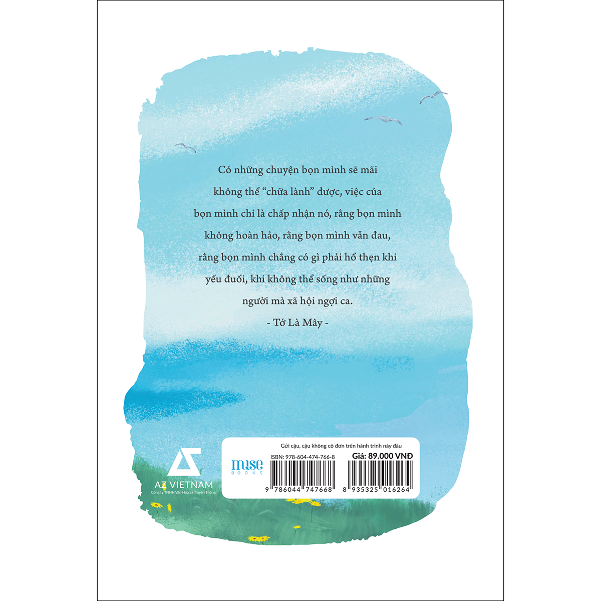 Và có lẽ đó cũng chính là lý do mà Tớ Là Mây đã chắp bút đề tên cho cuốn sách đong đầy những yêu thương và sắc màu xúc cảm này là “Gửi Cậu, Cậu Không Cô Đơn Trên Hành Trình Này Đâu” – cùng với những chia sẻ về những trải nghiệm đắt giá mà bất cứ ai cũng đều phải trải qua trên bước đường trưởng thành, để nhắn nhủ đến từng người rằng: Cho dù bạn đang ở chặng nào của cuộc hành trình thì cũng sẽ luôn có nắng vàng rạng rỡ, những bông hoa ngọt ngào, thảm cỏ cây xanh mướt và một áng “Mây” xinh luôn đồng hành bên bạn, để bạn không cô đơn, để bạn không hoang mang mơ hồ trên bước đường trưởng thành đầy gai góc này.