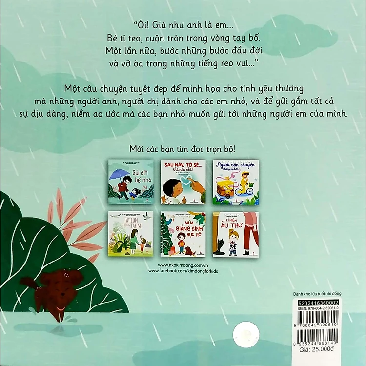 - “Ôi! Giá như anh là Bé tí teo, cuộn tròn trong vòng tay bố. Một lần nữa, bước những bước đầu đời và vỡ òa trong những tiếng reo ” Một câu chuyện tuyệt đẹp để minh họa cho tình yêu thương mà những người anh, người chị dành cho các em nhỏ, và để gửi gắm tất cả sự dịu dàng, niềm ao ước mà các bạn nhỏ muốn gửi tới những người em của mình.