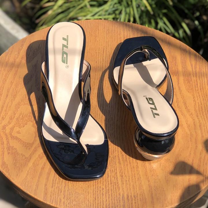 RO725 – Dép guốc nữ kẹp ngón bản lớn, thiết kế nổi bật nâng tầm phong cách Gây ấn tượng từ cái nhìn đầu tiên với phần bản kim loại sáng bóng phối hình oval