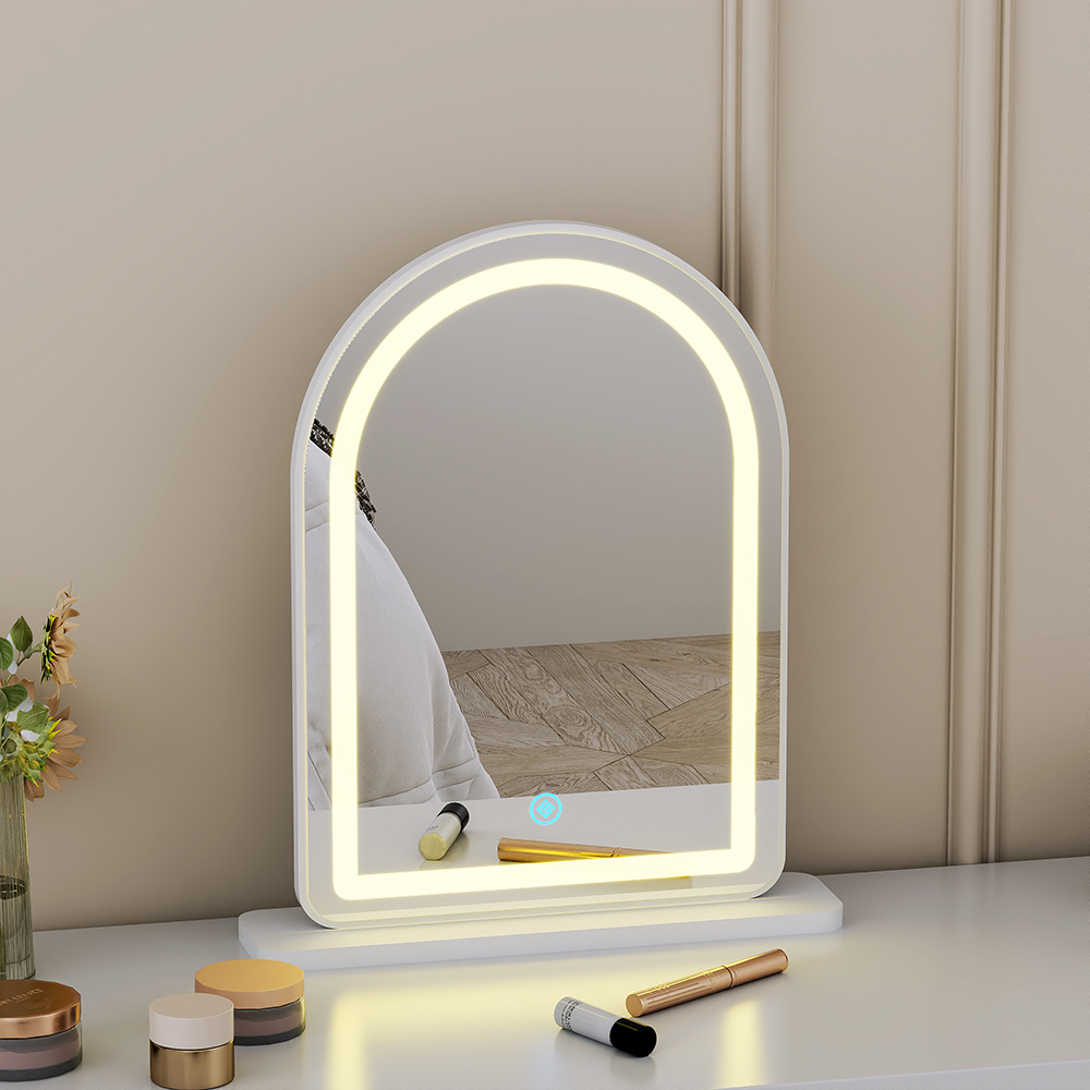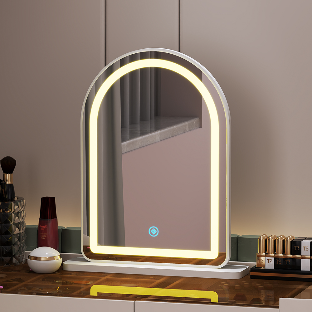 Gương trang điểm đèn led 3 màu màn hình cảm ứng siêu nét kích thước để bàn tiện lợi xinh xắn