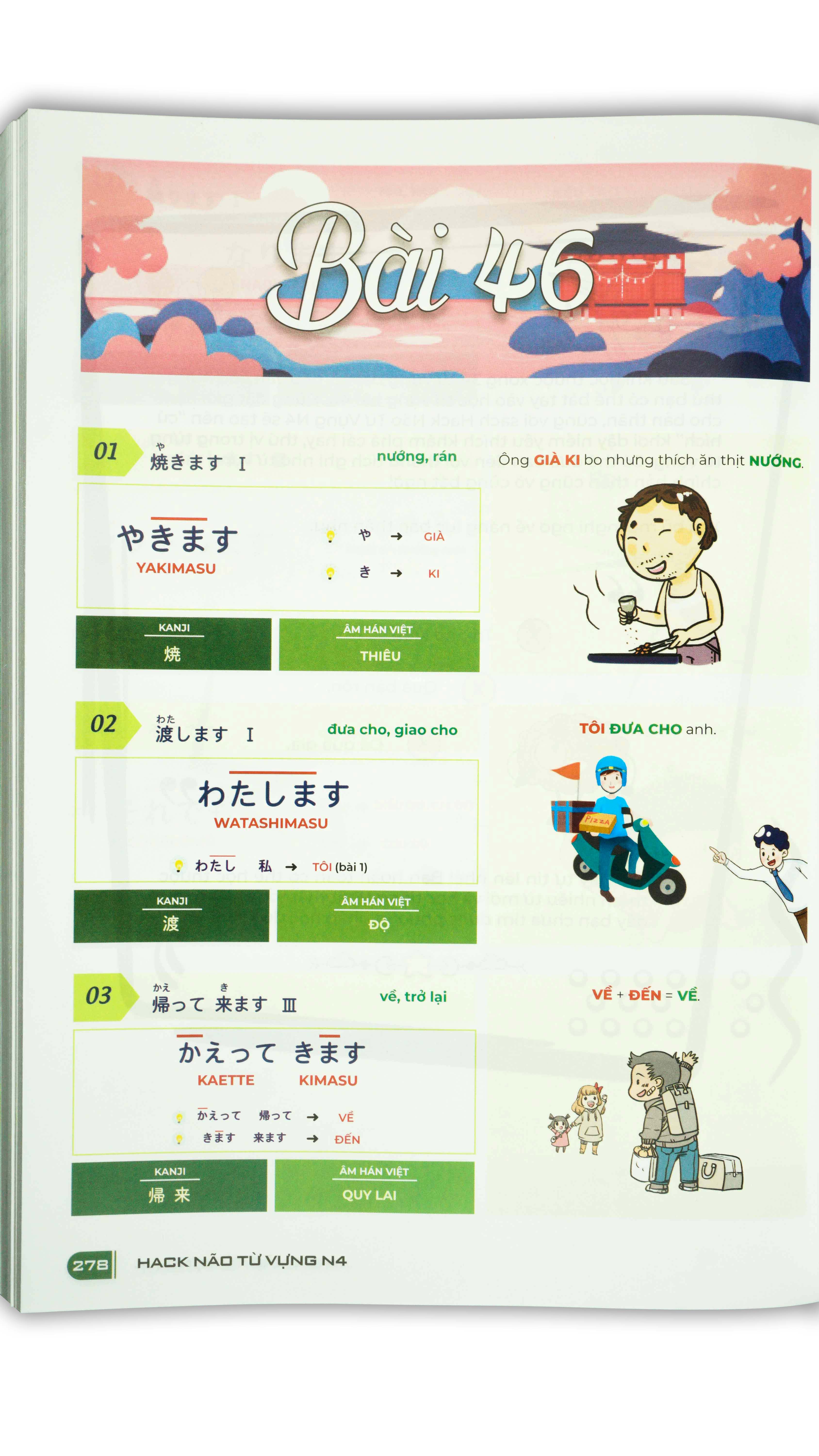 ️ Thông tin sách Hack Não Từ Vựng N4 - Phương pháp học: 1. Phương pháp âm thanh tương tự 2. Phương pháp từ giống nhau 3. Phương pháp chuyển âm Hán Việt - Nội