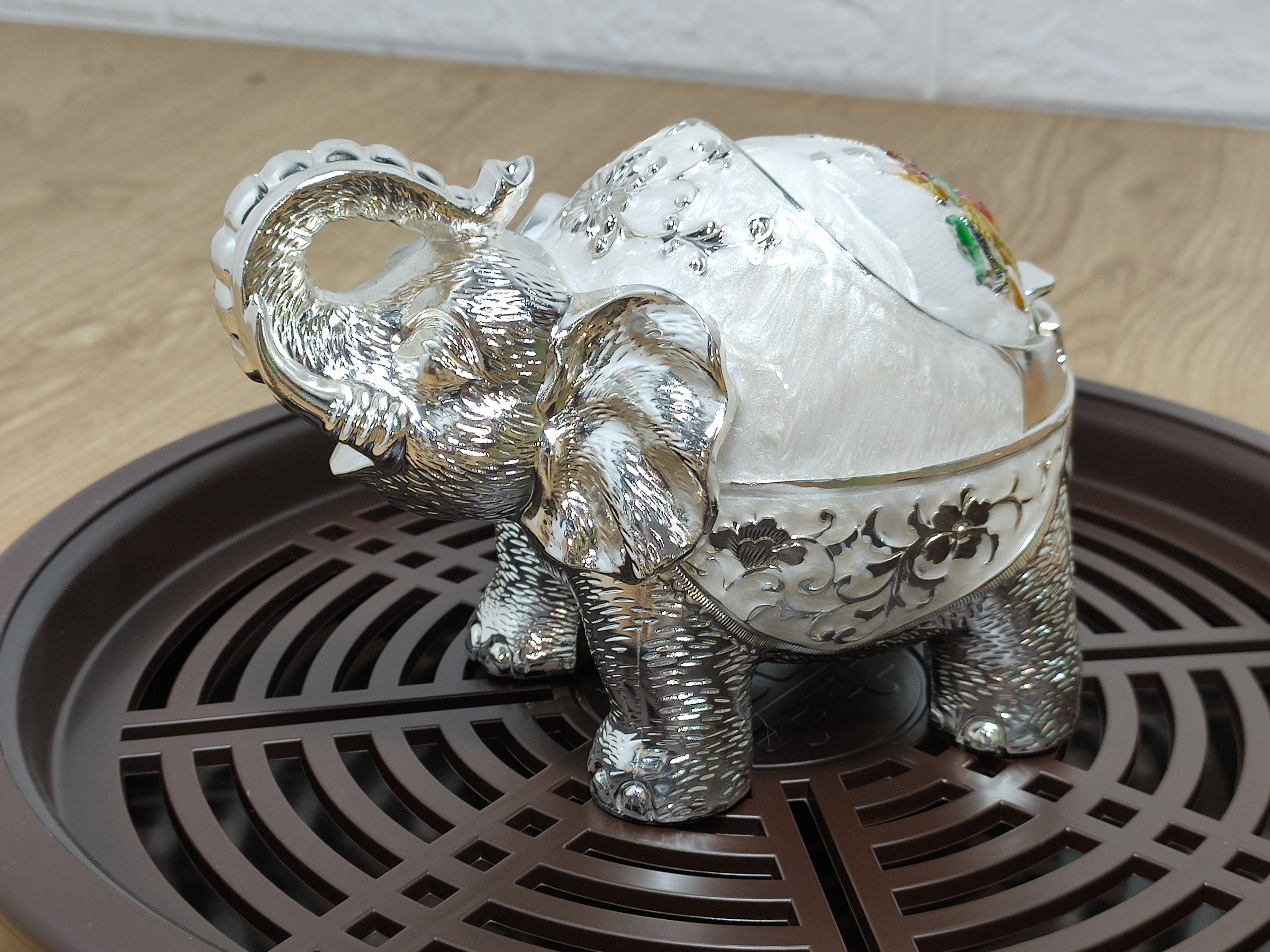 Gạt tàn thuốc phong cách hoàng gia hình voi tròn kéo đẩy nắp dễ dàng GTT27 | Quang Duy Plasma