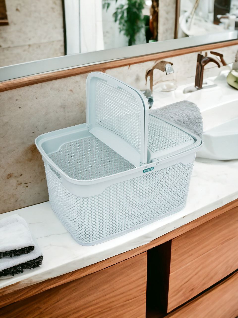 - Nhựa PP nguyên sinh không chỉ bền bỉ mà còn an toàn cho sức khỏe, giúp bạn yên tâm khi sử dụng để đựng đồ sơ sinh. - Thiết kế quai xách chắc chắn ở giữa tạo sự cân đối khi di chuyển, giúp bạn dễ dàng mang theo đồ đạc mà không lo bị lệch. - Nắp đậy tiện lợi giúp bảo quản đồ đạc ngăn nắp, không bị rơi rớt, giữ cho không gian luôn gọn gàng. - Làn nắp Hokori đa năng không chỉ phù hợp để đựng đồ sơ sinh mà còn lý tưởng để lưu trữ nhiều vật dụng gia đình khác. Hướng dẫn sử dụng