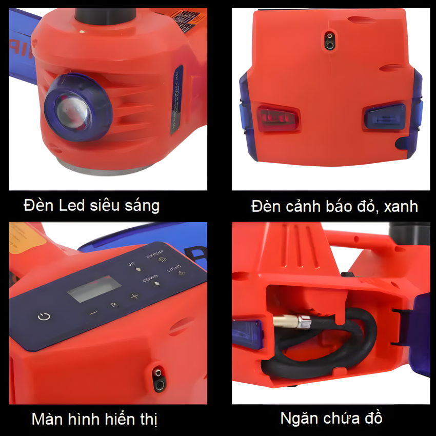Tính năng ưu việt : - Màn hình LED đôi hiển thị rõ ràng thông số áp suất - Kích bình ắc quy nhanh chóng với dòng xả lên tới 2000A - Cài đặt áp suất mong