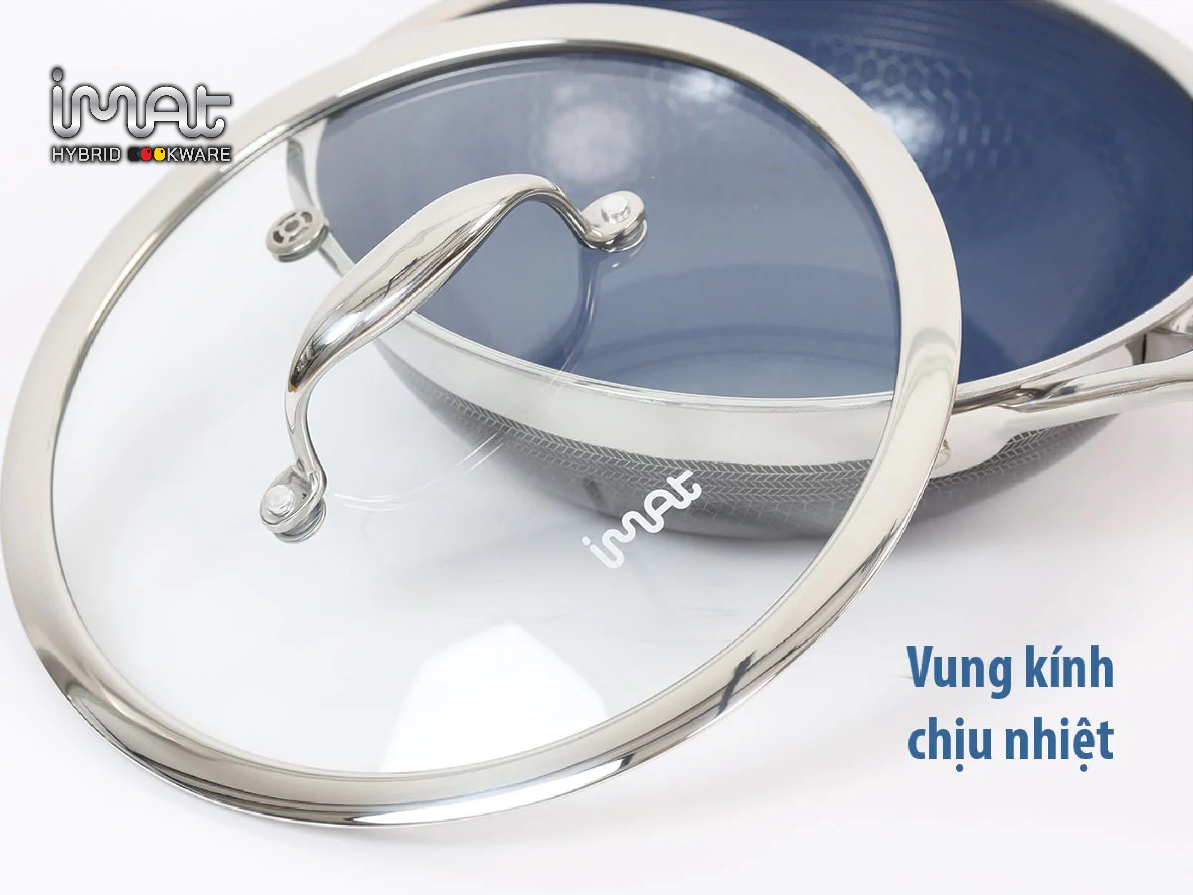 CHÍNH HÃNG iMAT. NHẬP KHẨU, PHÂN PHỐI TẠI VIỆT NAM ️ Chảo iMat Hybrid lòng xanh với các kích thước to nhỏ khác nhau để phù hợp các nhu cầu khác nhau trong nhà bếp.