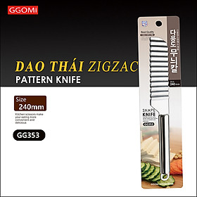 Dao thái hình zig-zac GGOMi Hàn Quốc GG353 có lưỡi dao được thiết kế dập nổi, in logo thương hiệu GGOMi tránh hàng nhái, hàng giả, tay cầm và lưỡi dao được sử dụng bằng vật liệu thép không gỉ an toàn với sức khỏe của con người khi sử dụng sản phẩm.