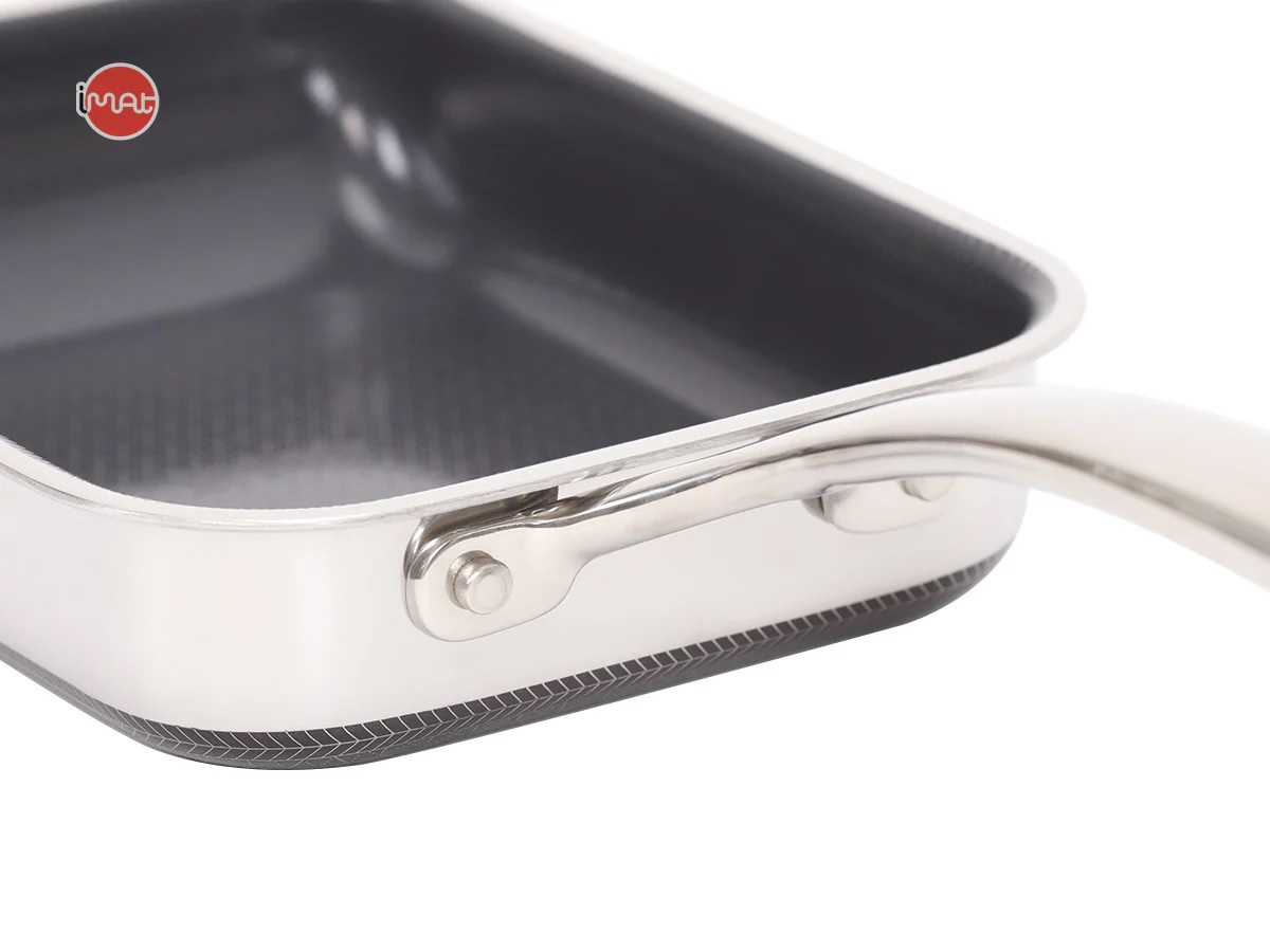 Chảo iMat Hybrid 15cm tay cầm dài, để chế biến món trứng cuộn Nhật Bản (Tamagoyaki) bằng cách chiên từng lớp trứng và cuộn thành khối vuông. Thiết kế chữ nhật nhỏ gọn và cấu trúc ba lớp cao cấp giúp chảo dẫn nhiệt tốt, tạo ra món trứng cuộn thơm ngon hơn. Ngoài ra, chảo còn phù hợp để chiên rán lượng thực phẩm nhỏ như thịt, cá, rau củ. lớp chống dính ceramic kết hợp công nghệ Blackcube giúp tăng cường khả năng chống dính và bền bỉ, không chứa PFOA và PTFE, đảm bảo an toàn sức khỏe