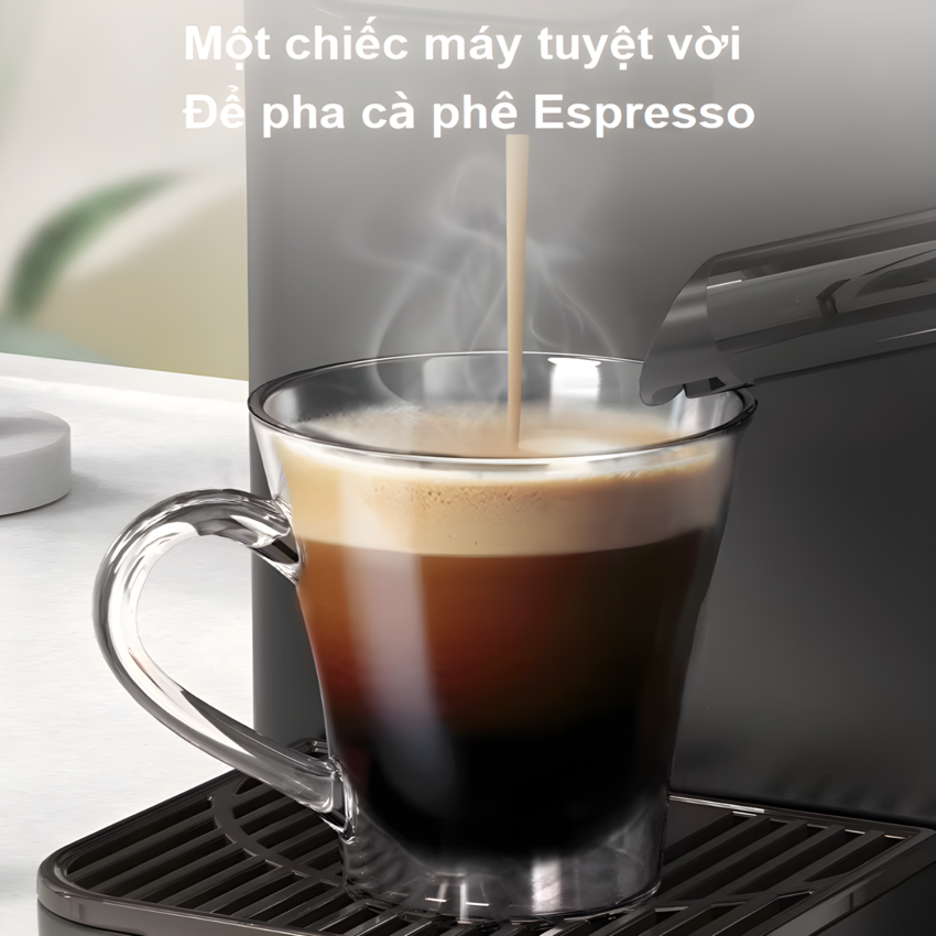 Bơm Italy áp suất 20 bar tạo ra tách cà phê đậm đà Công suất 1400W, điện áp 220-240V/50Hz-60Hz Gia nhiệt nhanh chóng, đảm bảo cà phê chiết xuất với nhiệt độ lý tưởng nhất