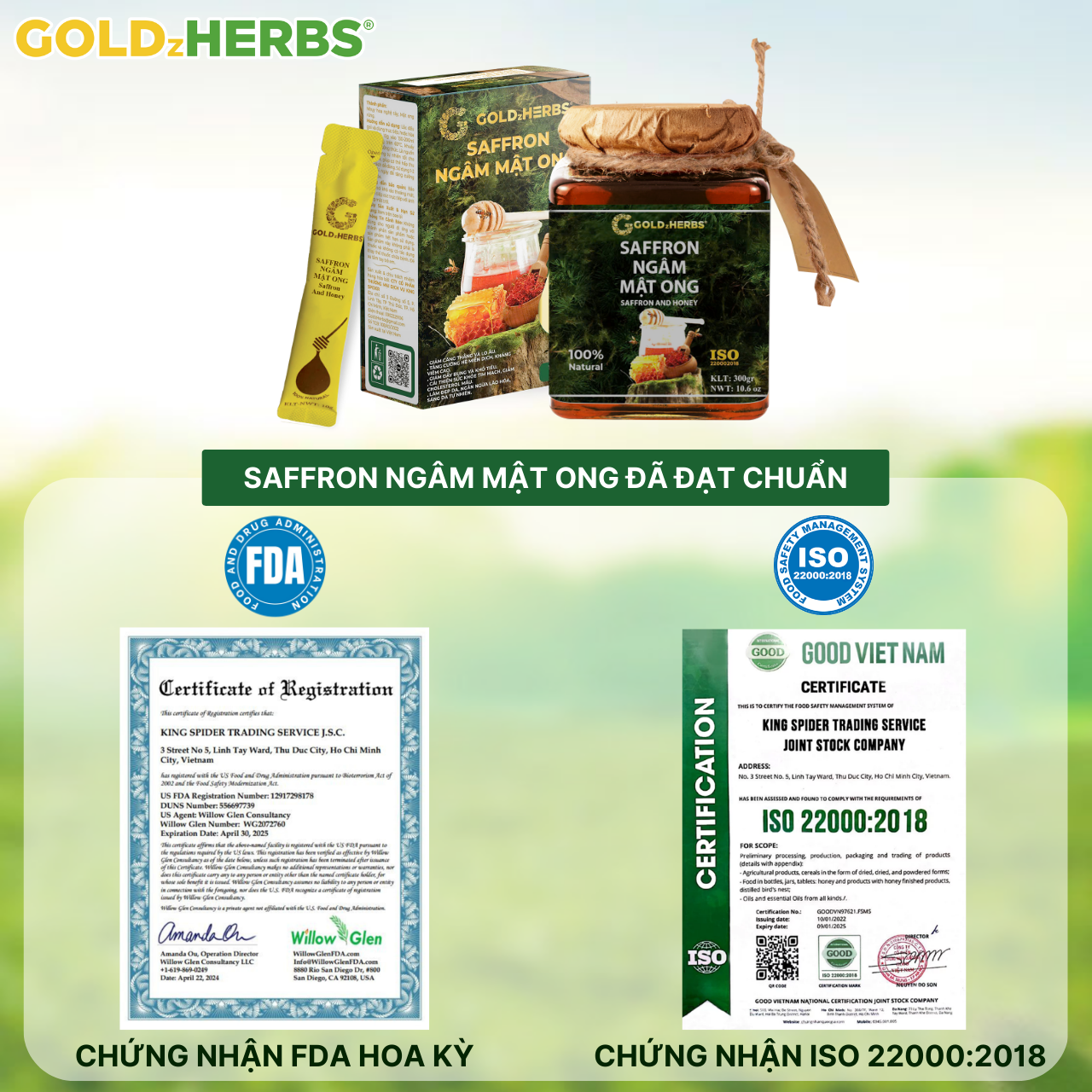 ✨Hàng chính hãng - Saffron ngâm mật ong GoldzHerbs, 100% mật ong nguyên chất – Hũ 300g/ Hộp 15 gói x 10g