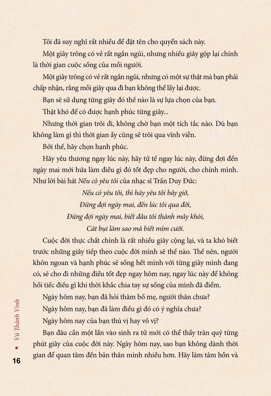 Sách Hạnh Phúc Từng Giây của tác giả Vũ Thành Vinh - bình an tại đây, ngay bây giờ!