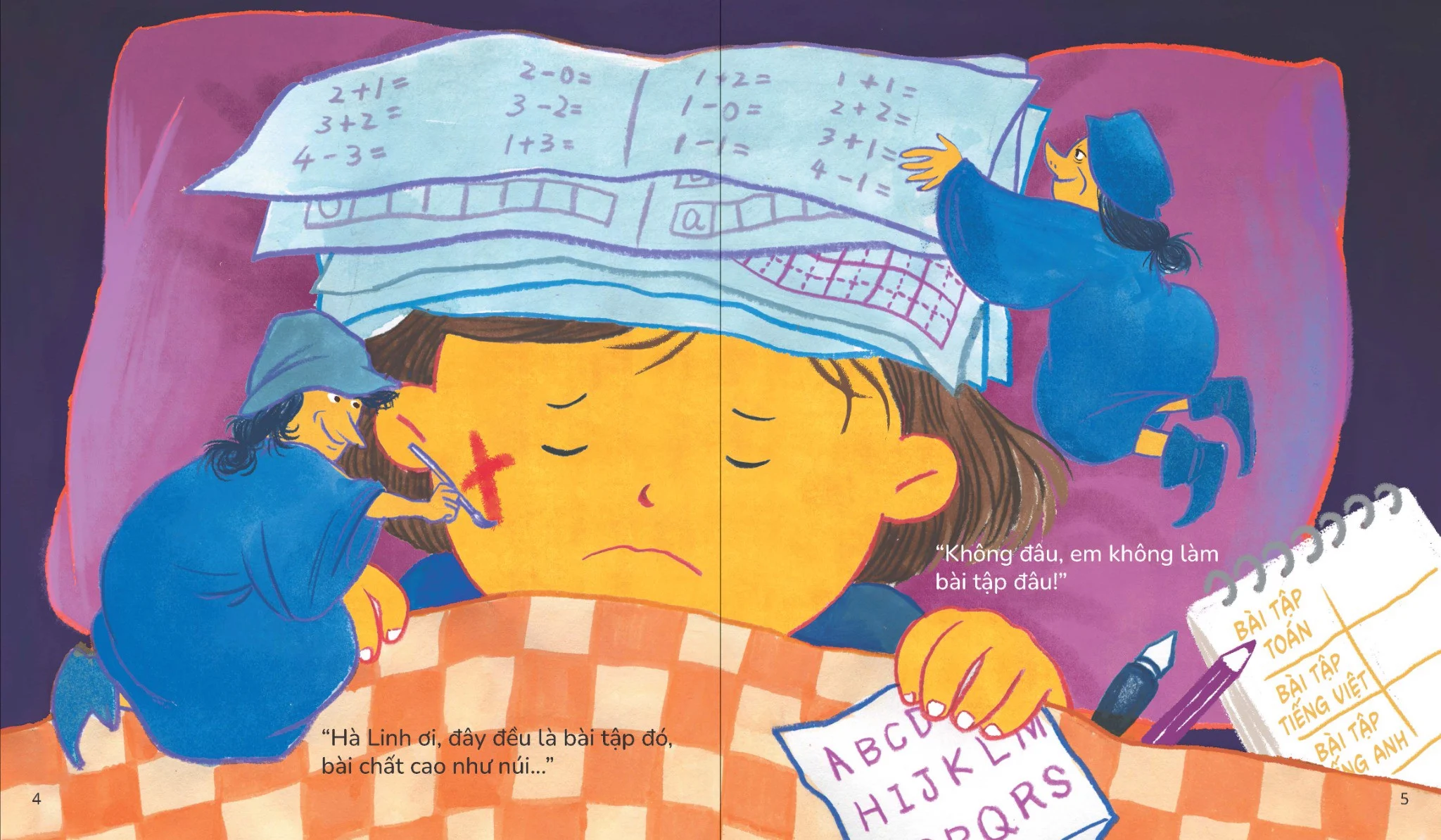 Các anh chị lớp lớn cứ dọa Hà Linh rằng lên lớp 1 phải làm nhiều bài tập. Hà Linh đâu biết bài tập là gì, nghe thế chỉ thấy lo sợ thôi. Nhờ bố mẹ và các bạn bè giảng giải, cô bé đã phát hiện ra việc làm bài tập thật thú vị