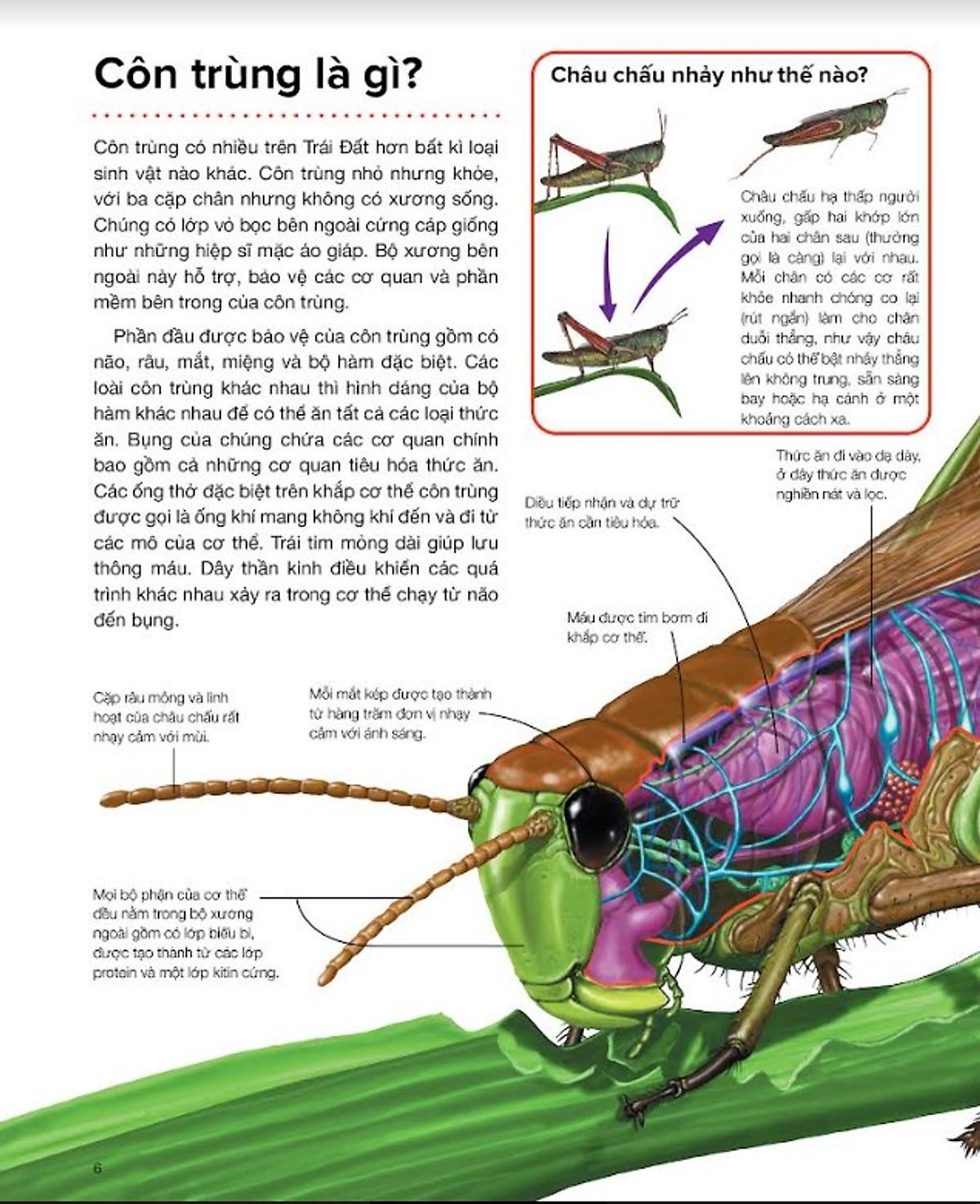 Côn trùng - là một cuốn sách viết về thế giới bí ẩn đầy hấp dẫn của những loài côn trùng – từ bản giao hưởng râm ran của ve sầu, vũ điệu lắc lư của loài ong cho đến tiếng kêu của dế. Trong cuốn sách 48 trang kết hợp nhiều hình họa sinh động này, bạn sẽ phải ngỡ ngàng trước những loài côn trùng nhỏ bé trên trái đất sống trong ao hồ, rừng mưa, đại dương, sa mạc… Bạn sẽ được khám phá cách côn trùng săn mồi, ăn uống, di chuyển, giao phối và xây dựng tổ ấm.