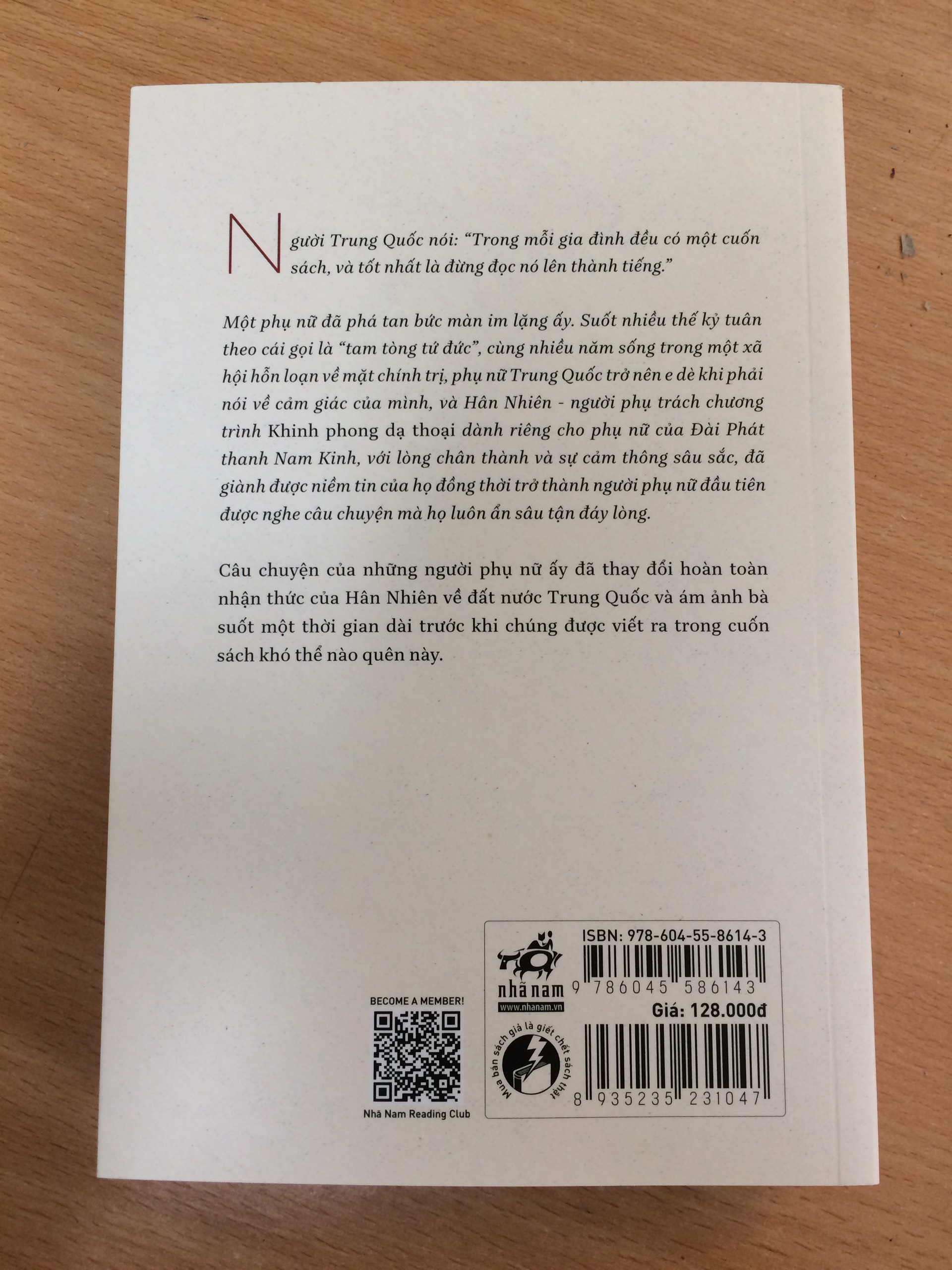Câu chuyện của những người phụ nữ ấy đã thay đổi hoàn toàn nhận thức của Hân Nhiên về đất nước Trung Quốc và ám ảnh bà suốt một thời gian dài trước khi chúng được viết ra trong cuốn sách khó thế nào quên này.