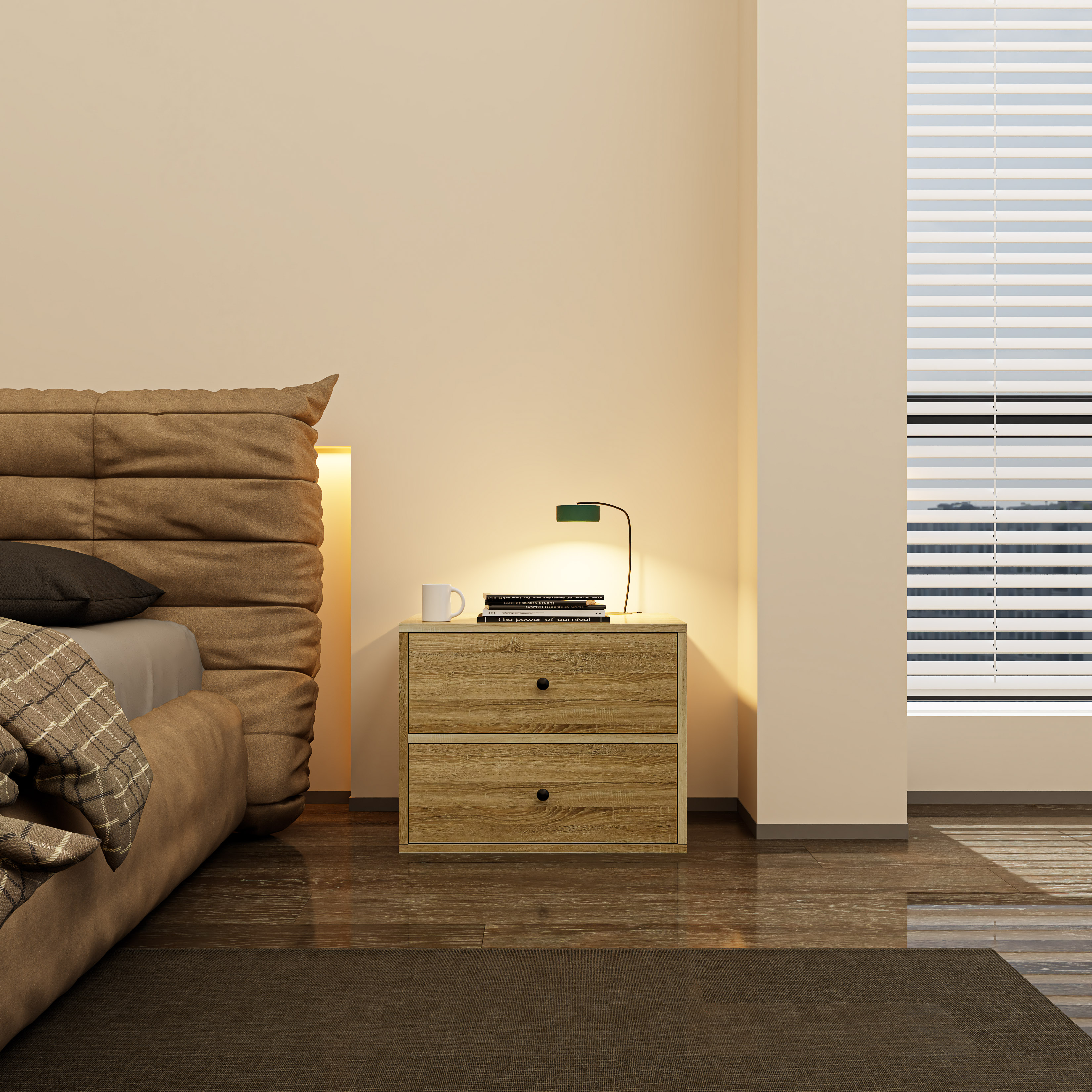 ✨HAPPY FURNITURE , ZACY - Táp đầu giường 2 ngăn kéo , THK_213 , 55cm x 45cm x 44cm DxRxC, Sản phẩm phổ thông