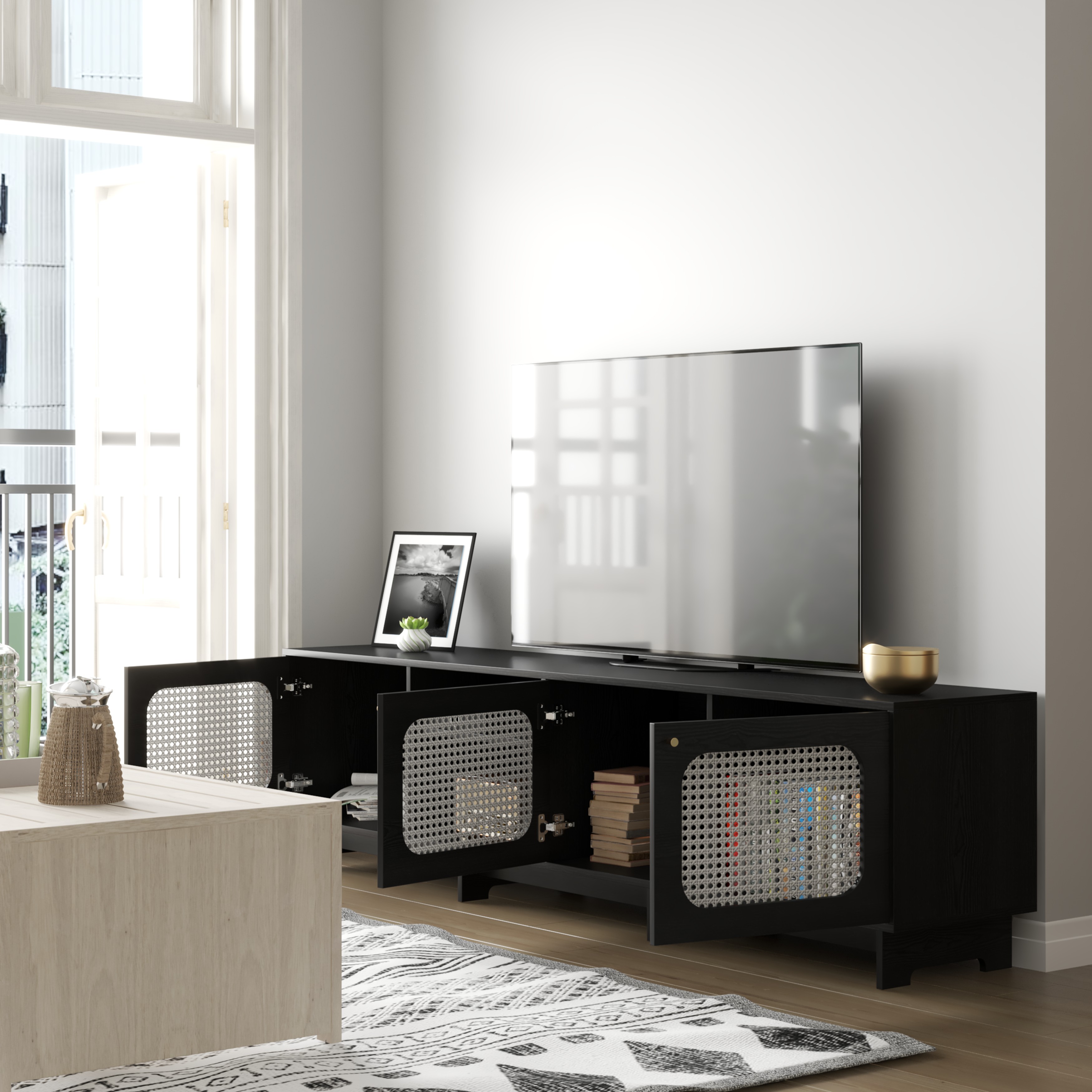 Kệ Tivi gỗ hiện đại SMLIFE Tioga là một sự bổ sung hoàn hảo cho phòng khách của bạn. Kệ tivi Tioga được thiết kế cân đối lấy cảm hứng từ những ngôi đền Nhật