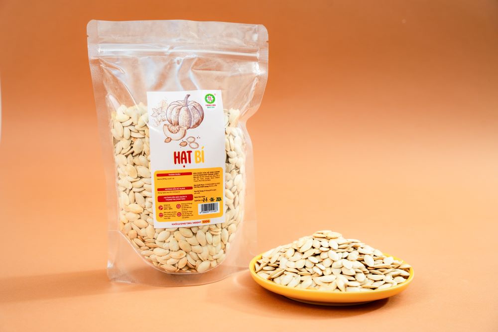 Sản phẩm Hạt Bí Sạch Rang Muối Truyền Thống Thơm Ngon Tiện Lợi của Thành Long.