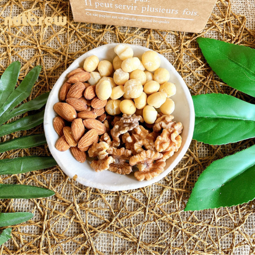 Thành phần: hạt Macca Úc, hạt óc chó và hạnh nhân nhập khẩu từ Mỹ.