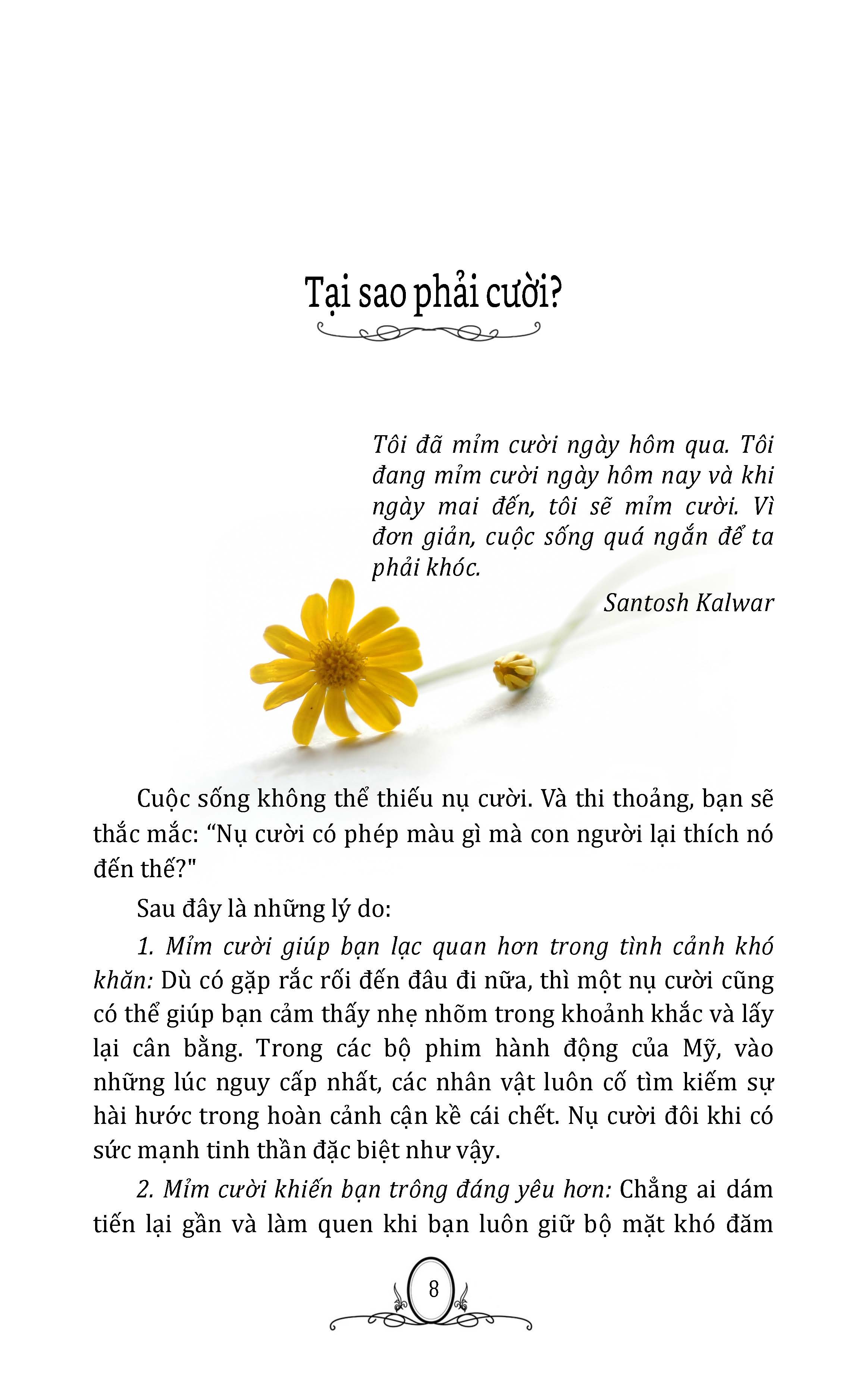 "Hãy để nụ cười lên tiếng" - Cuốn sách sẽ giúp bạn khám phá sức mạnh kỳ diệu của nụ cười. Qua những câu chuyện cảm động, những chia sẻ chân thực, bạn sẽ nhận ra rằng nụ cười không chỉ là một biểu hiện của niềm vui mà còn là một nguồn sức mạnh giúp chúng ta vượt qua mọi khó khăn trong cuộc sống. Cuốn sách sẽ giúp bạn tìm thấy niềm vui trong cuộc sống, xây dựng những mối quan hệ tốt đẹp, trở thành một người lạc quan...